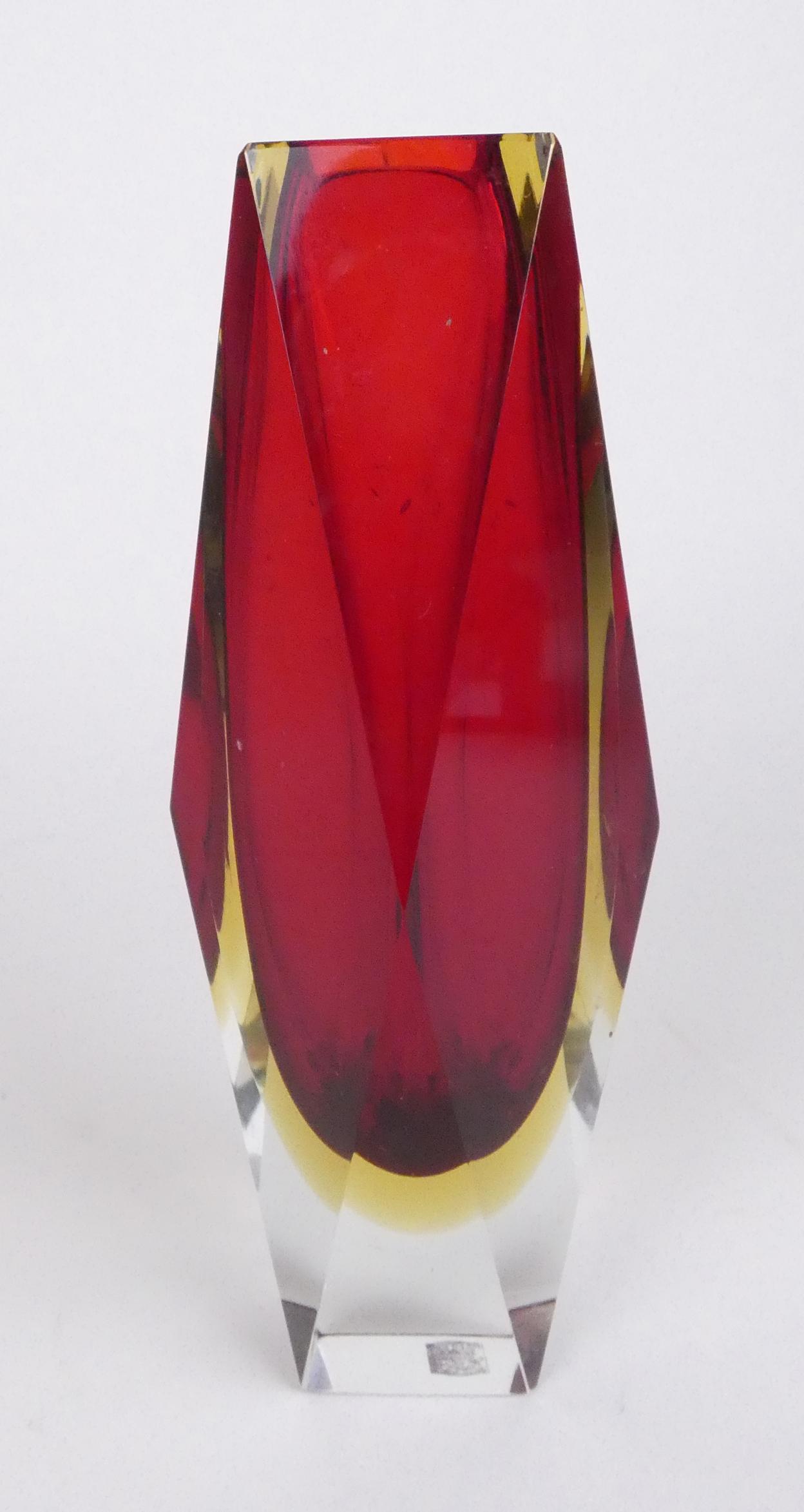 Verrerie: Vase en verre dit Sommerso attribué à *POLI F.* (Flavio) (1900, 1984) édition Seguso MURANO H:23cm