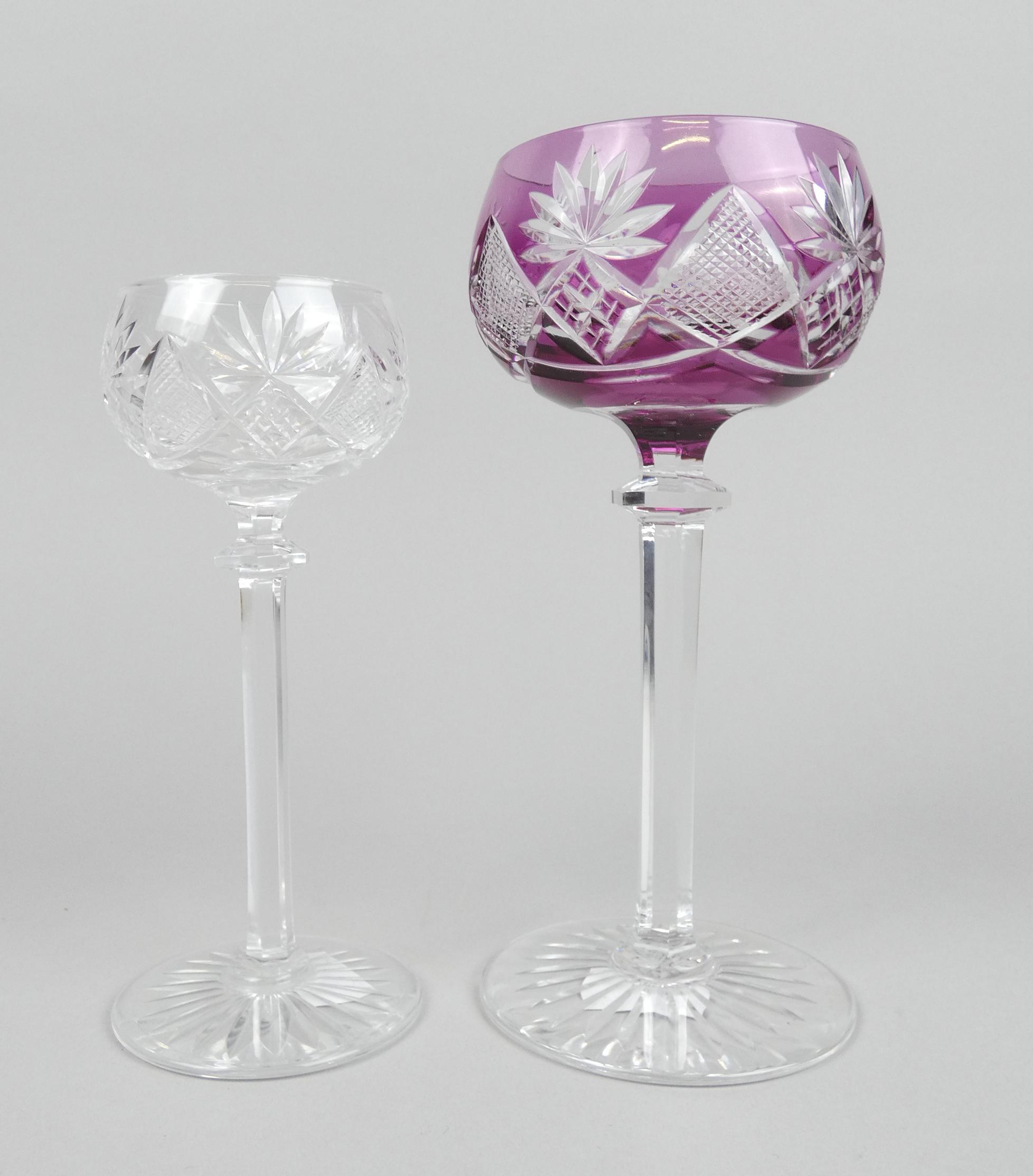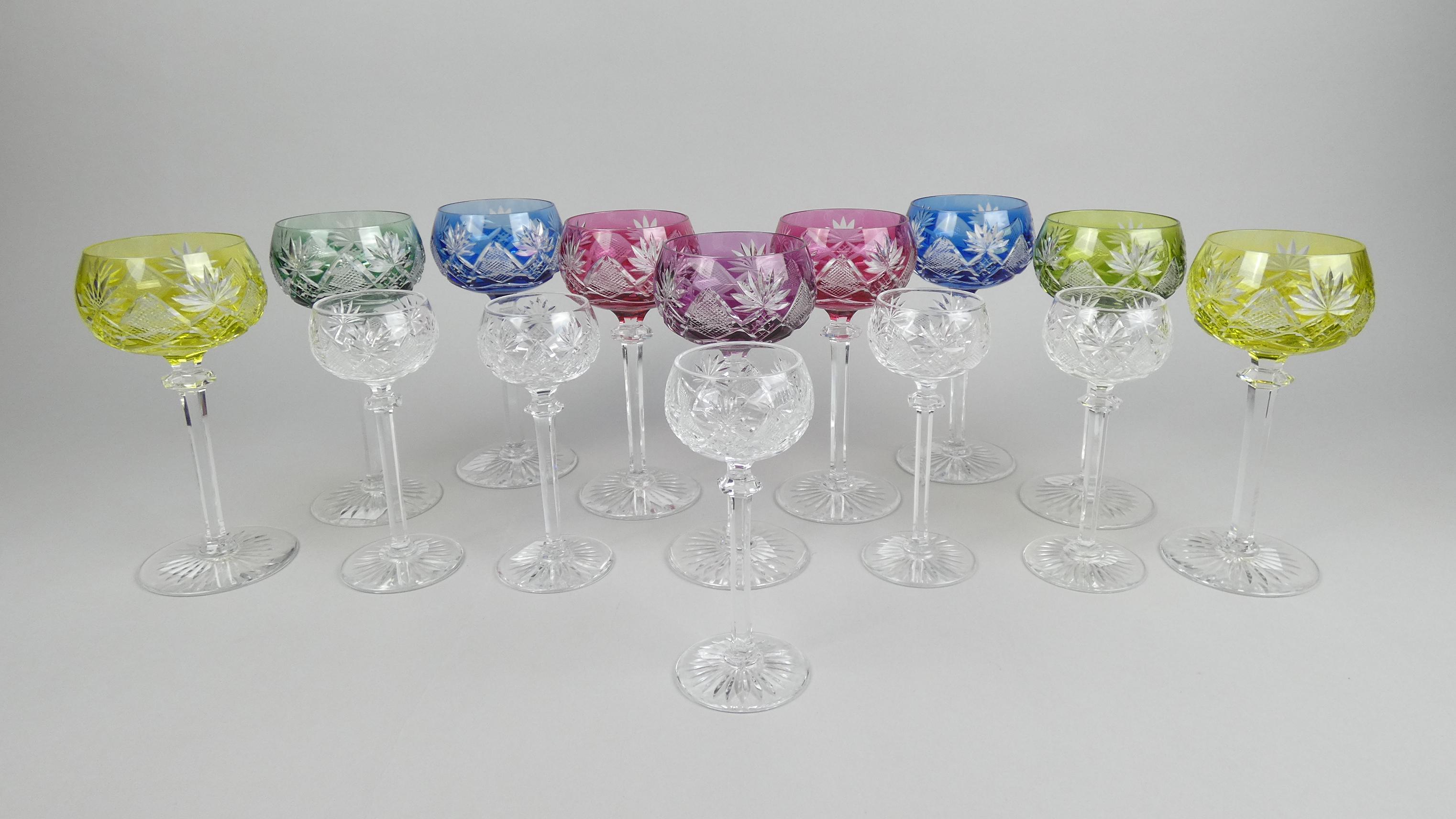 Verrerie : (14) Partie de service de verres en cristal taillé bicolore signé Val Saint Lambert (9pcs) modèle Berncastel circa 1947 + 5 incolores non signé