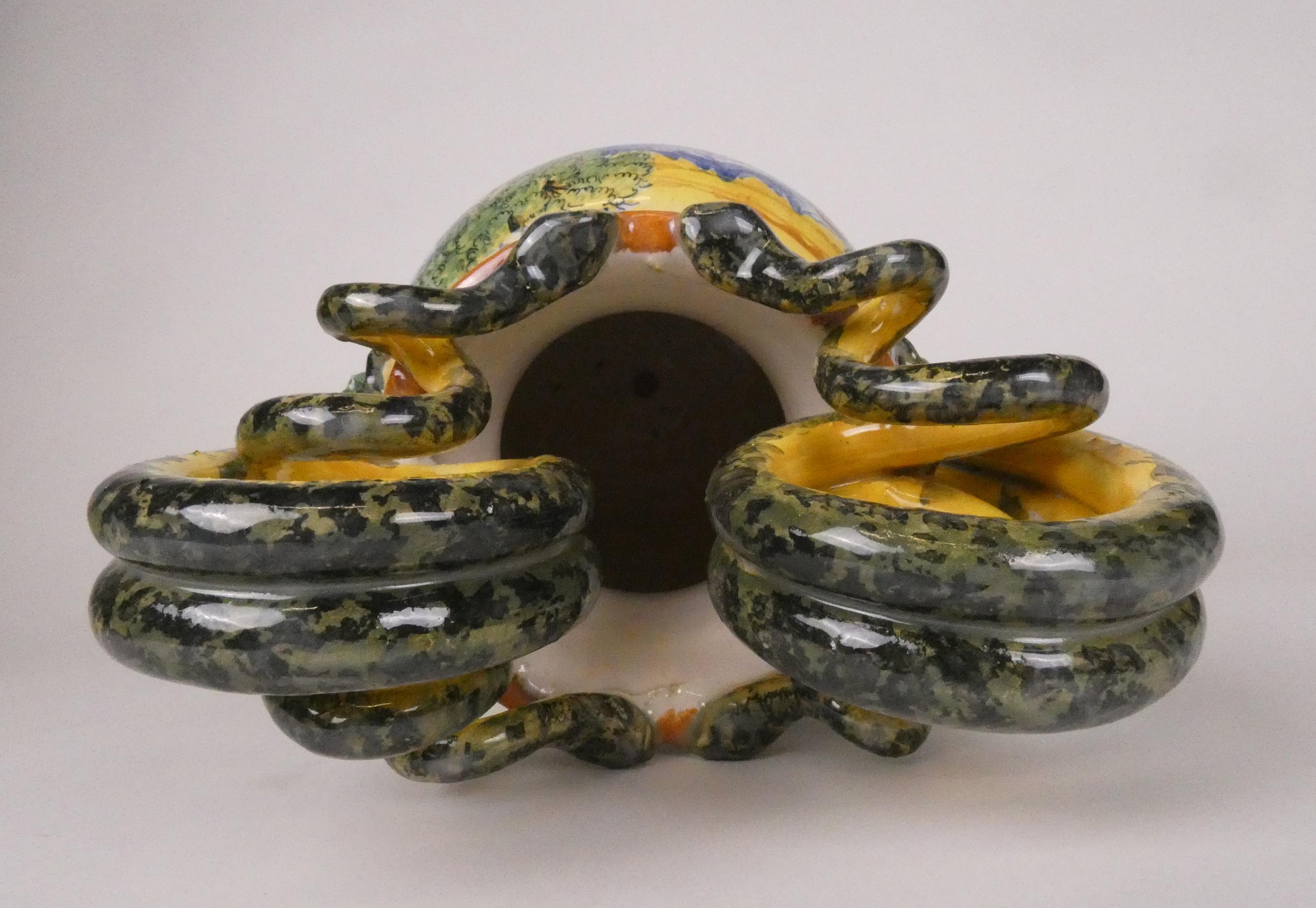 Céramique : Vase en faïence (egr) dans le goût de URBINO anses de serpents décor peint d'une scène antique