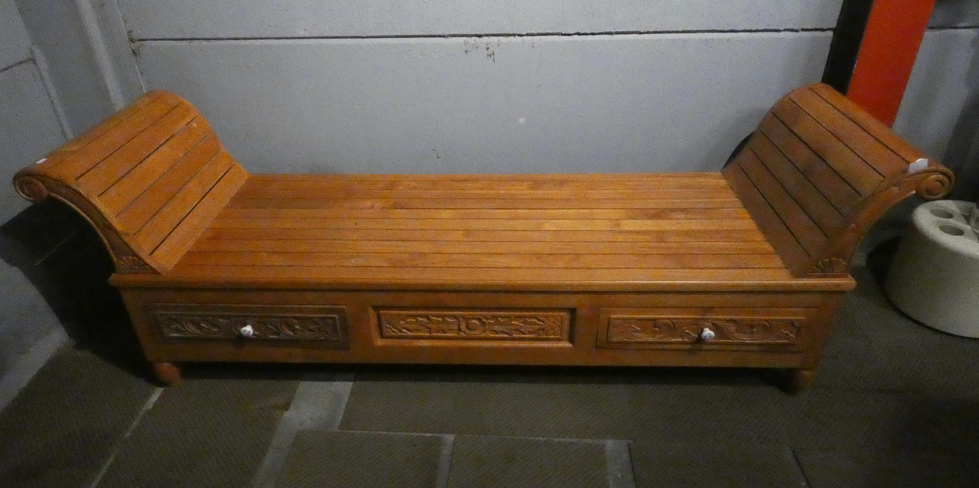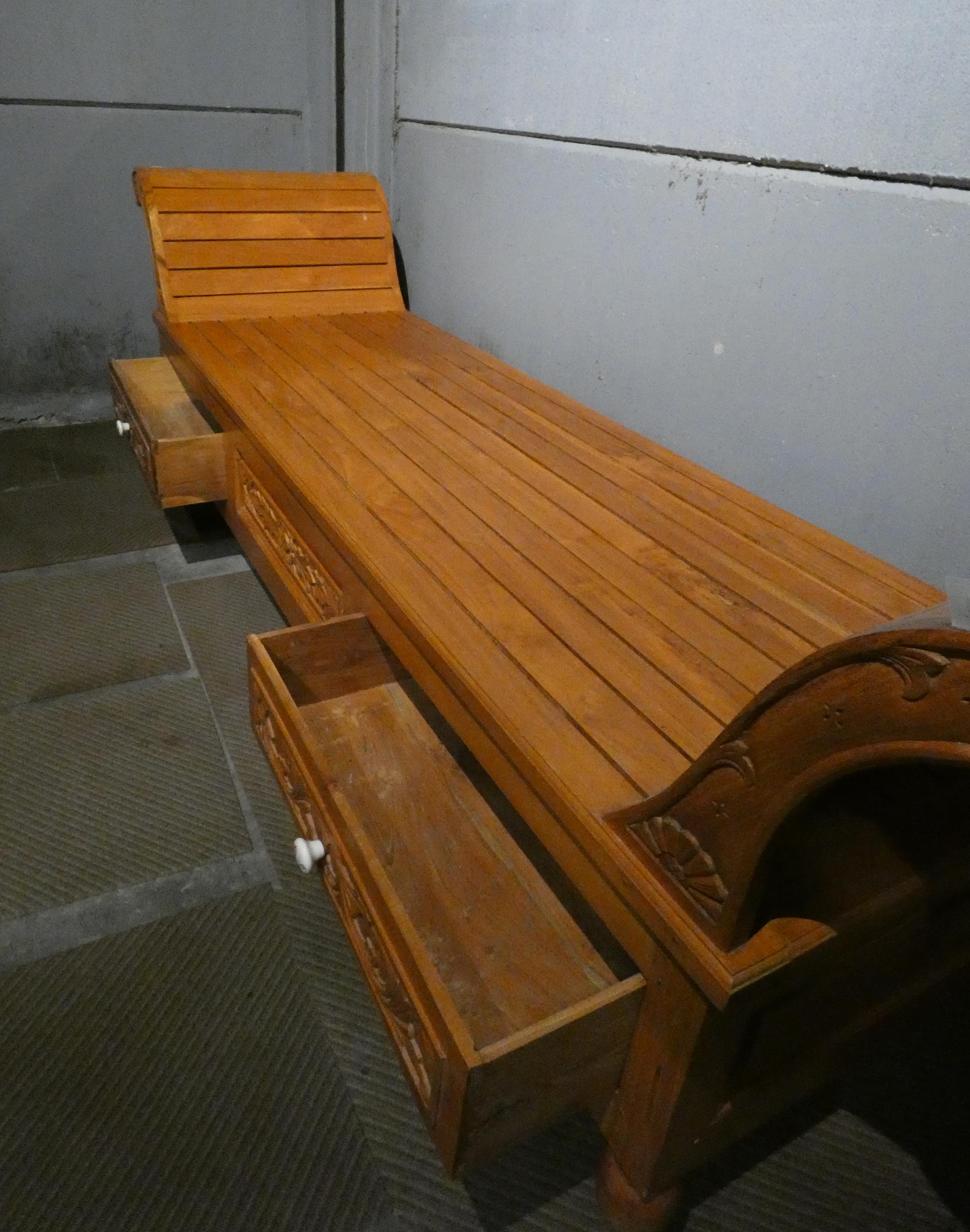 Meuble: Méridienne/Banc en bois sculpté 4 tiroirs 69x210x58cm