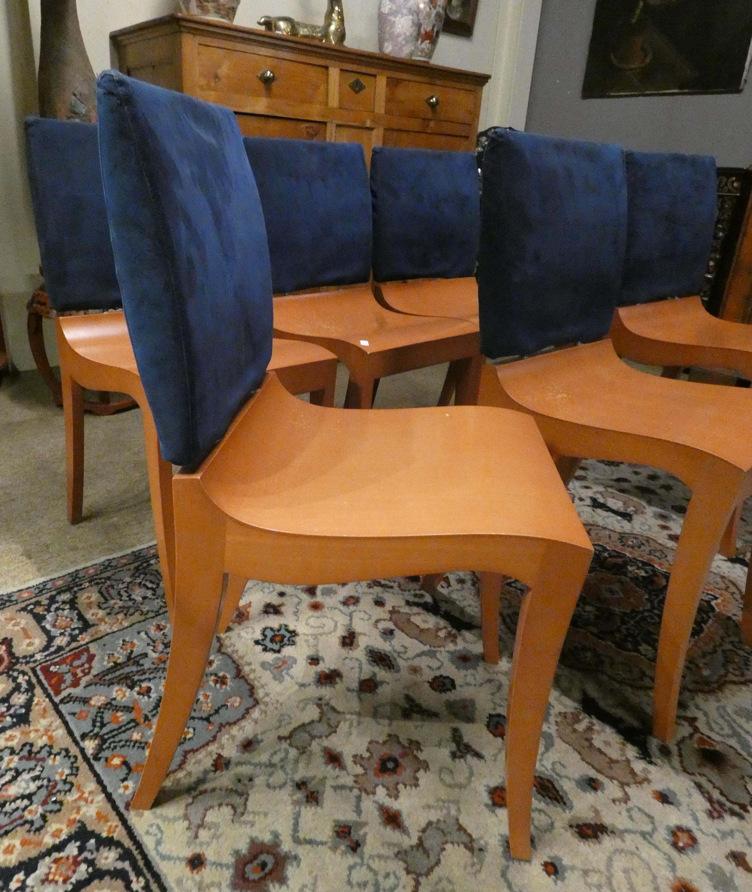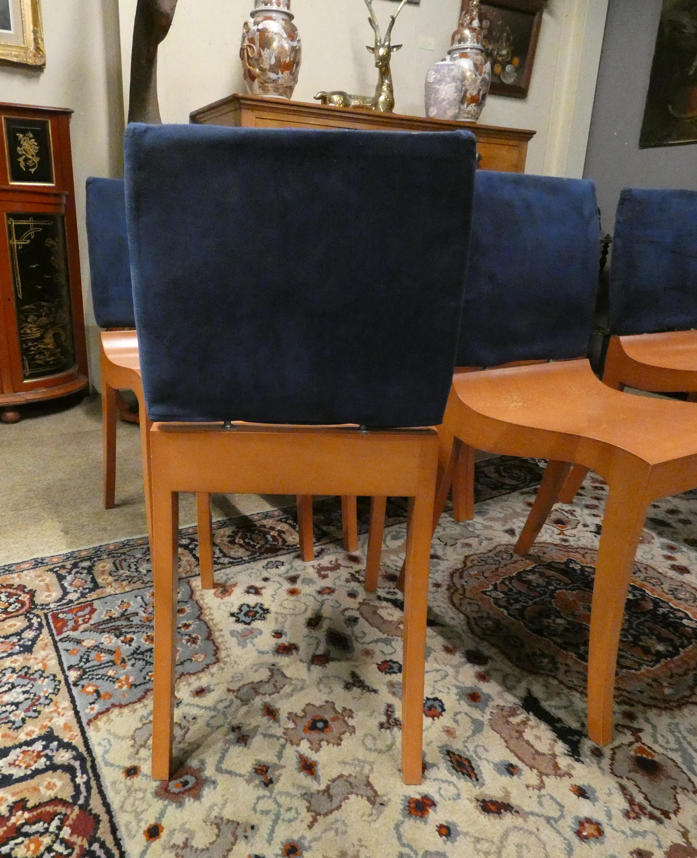 Meuble: 6 chaises Ligne Roset (étiquette sur certaines) (usures d'usage) modèle FINN design *DESOMBRE T.* (Thibault) (1958, ) assise en bois dossier avec housse en tissu