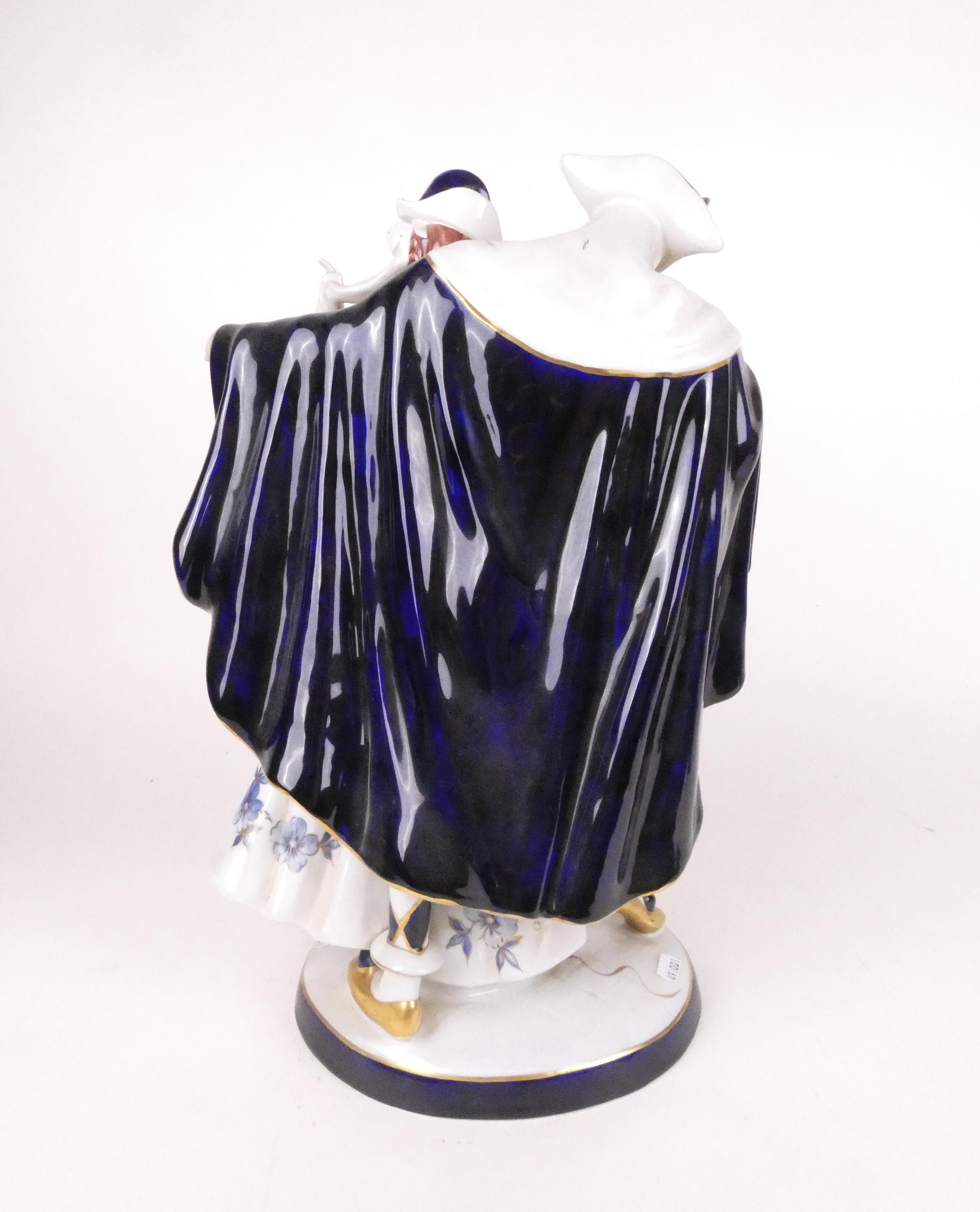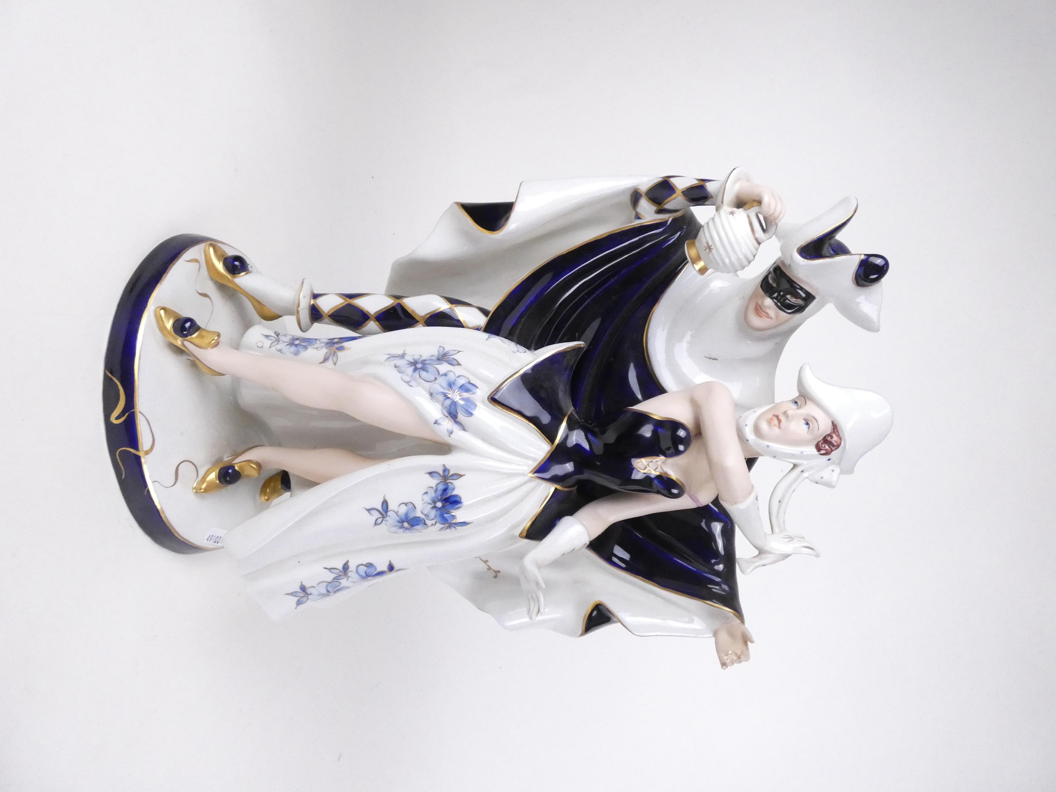 Céramique: Groupe en porcelaine polychrome cachet sous la base ROYAL DUX -Arlequin & Colombine- décor peint rehauts d'or H:49cm