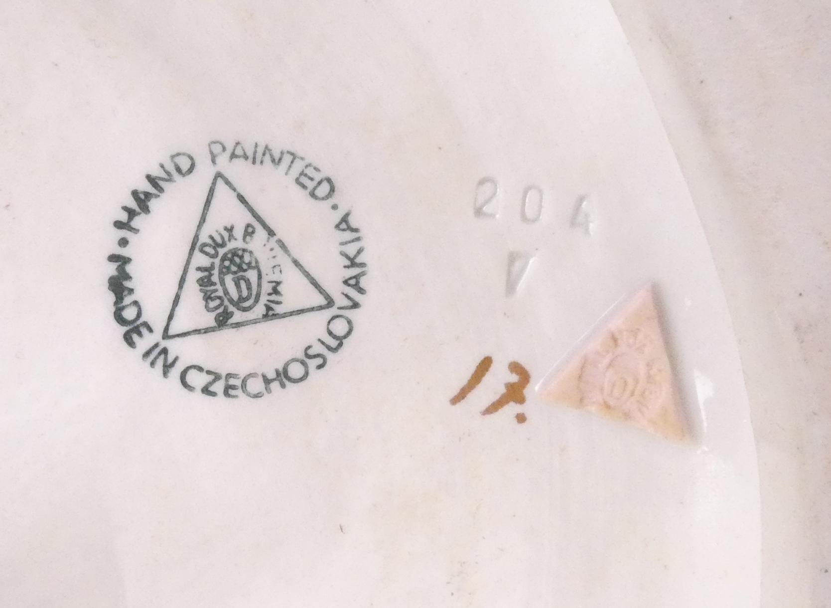 Céramique : Groupe en porcelaine polychrome cachet sous la base ROYAL DUX - Arlequin & Colombine - décor peint rehauts d'or