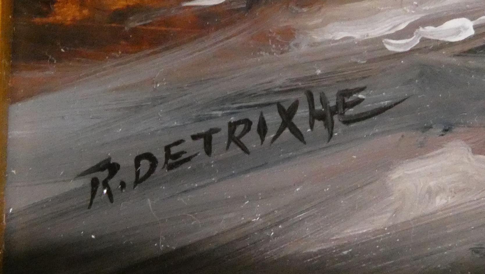 Tableau HSB -Hollande en hiver- signé *DETRIXHE R.* (Robert) (1935, ?) 27x37cm cadre doré de style