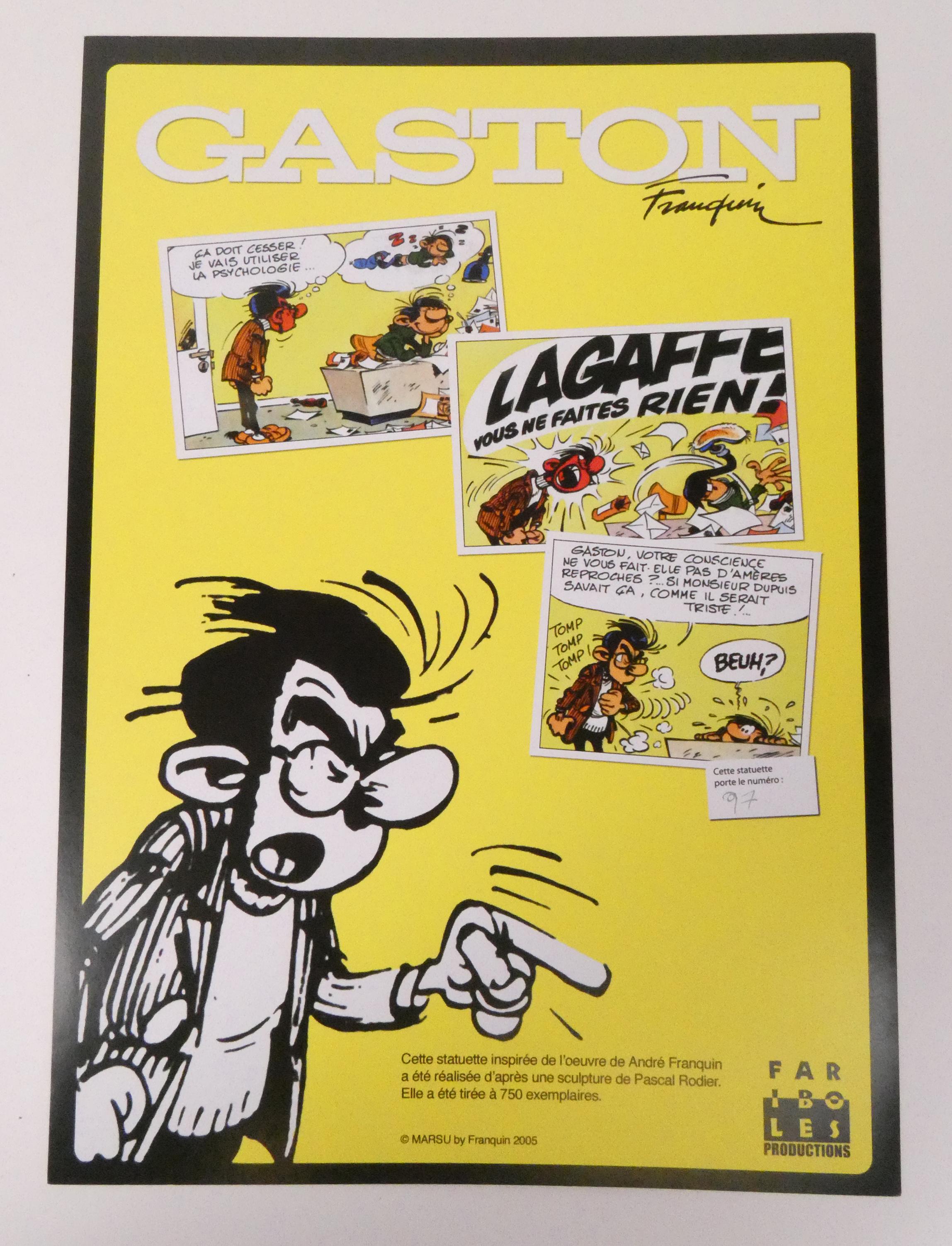 BD: Franquin, Fariboles Collection Gaston -Prunelle- N° 97/750 en résine H:22,5cm circa 2005 dans sa boite d'origine avec certificat