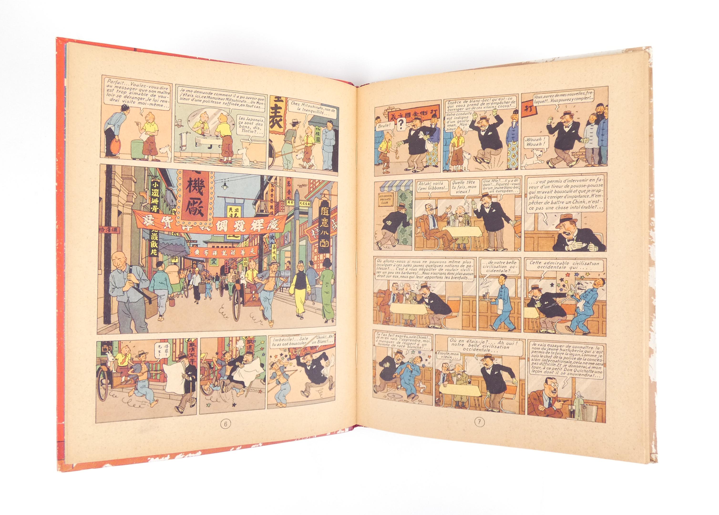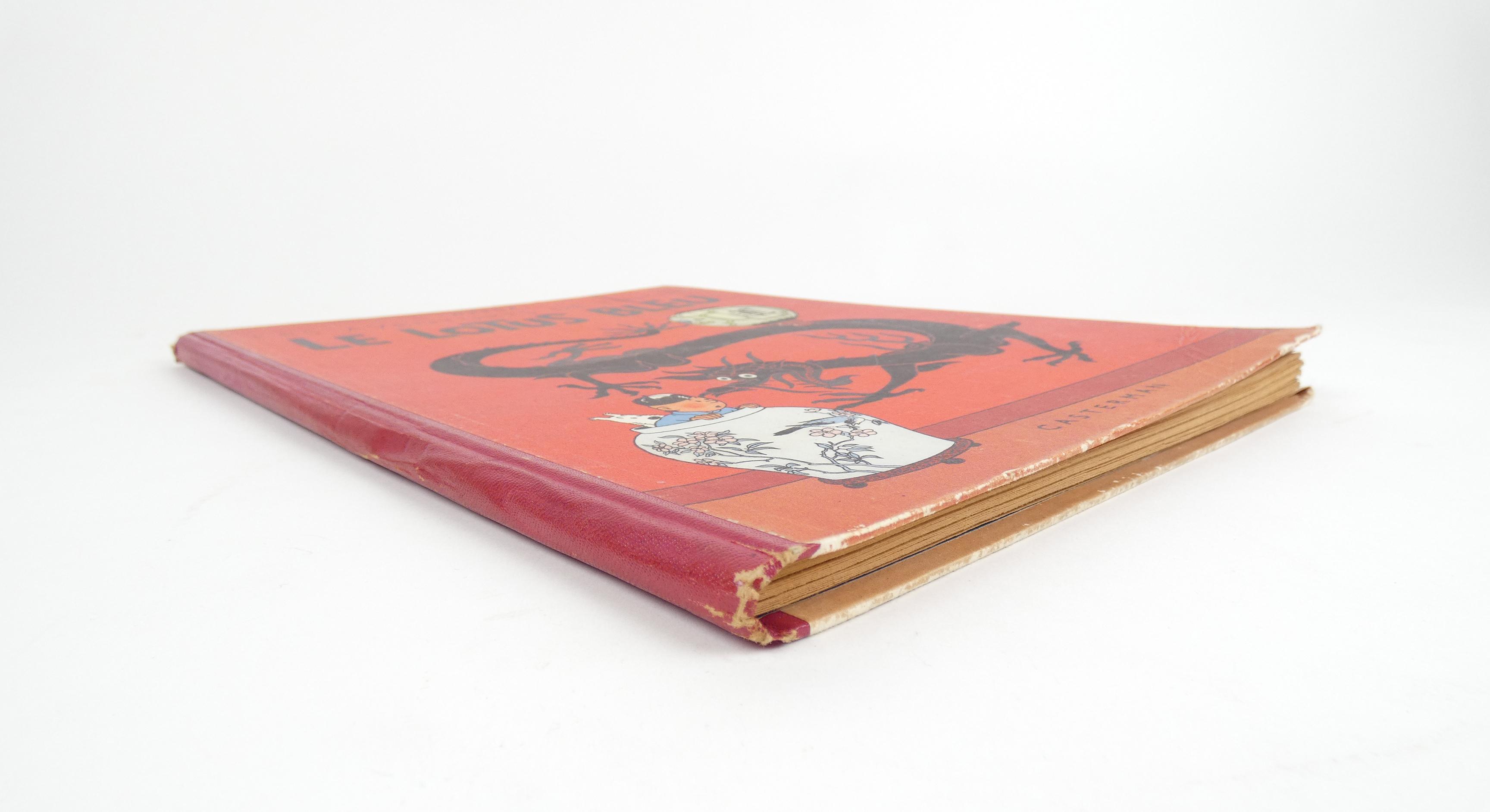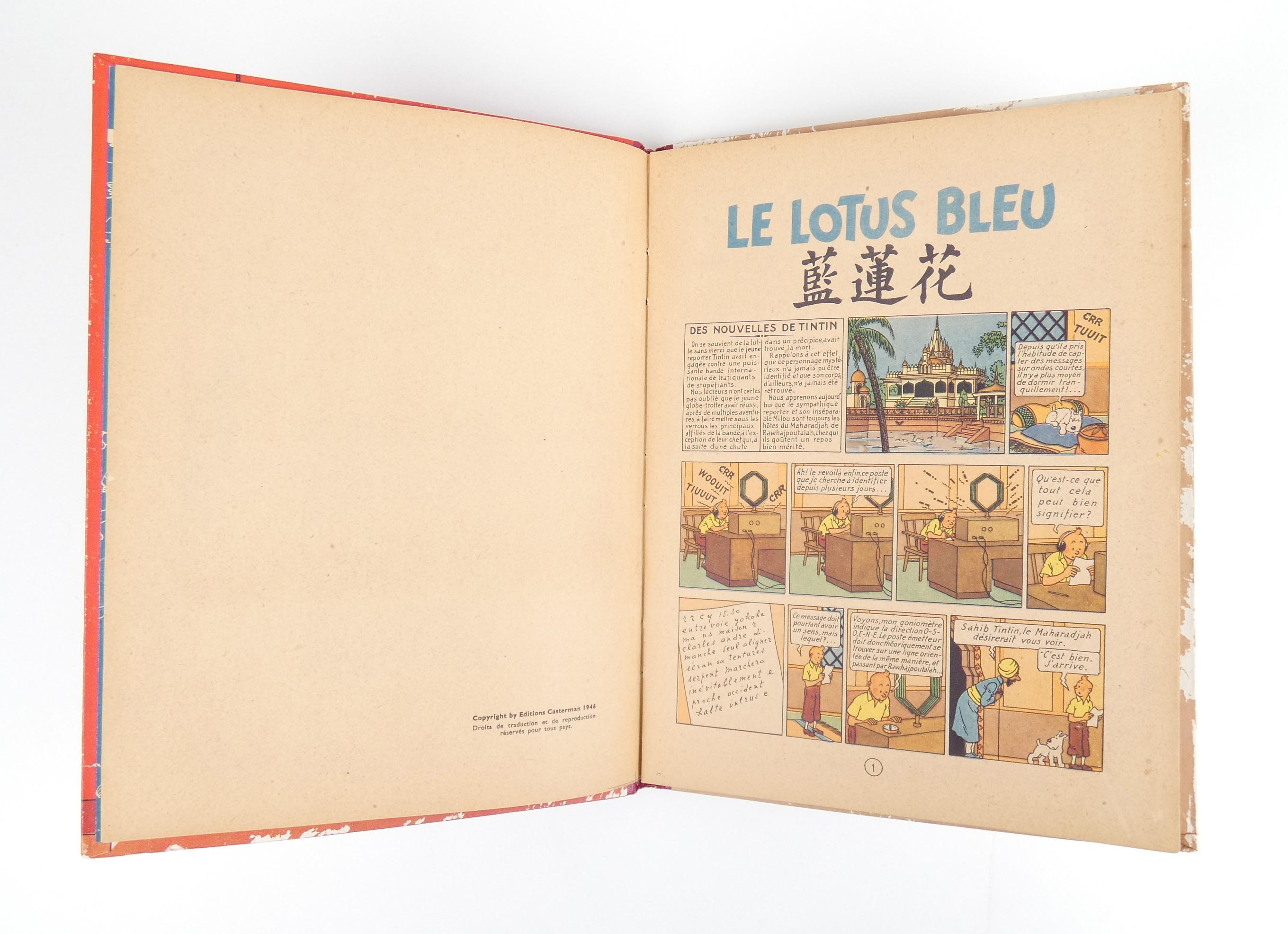 BD : Tintin HERGE éd Casterman -Le Lotus bleu- EO dos B1 1946, texte en bleu en p. de titre (leg traces frottement ext., int jauni, pt déchirures) (BDM26 :2200)