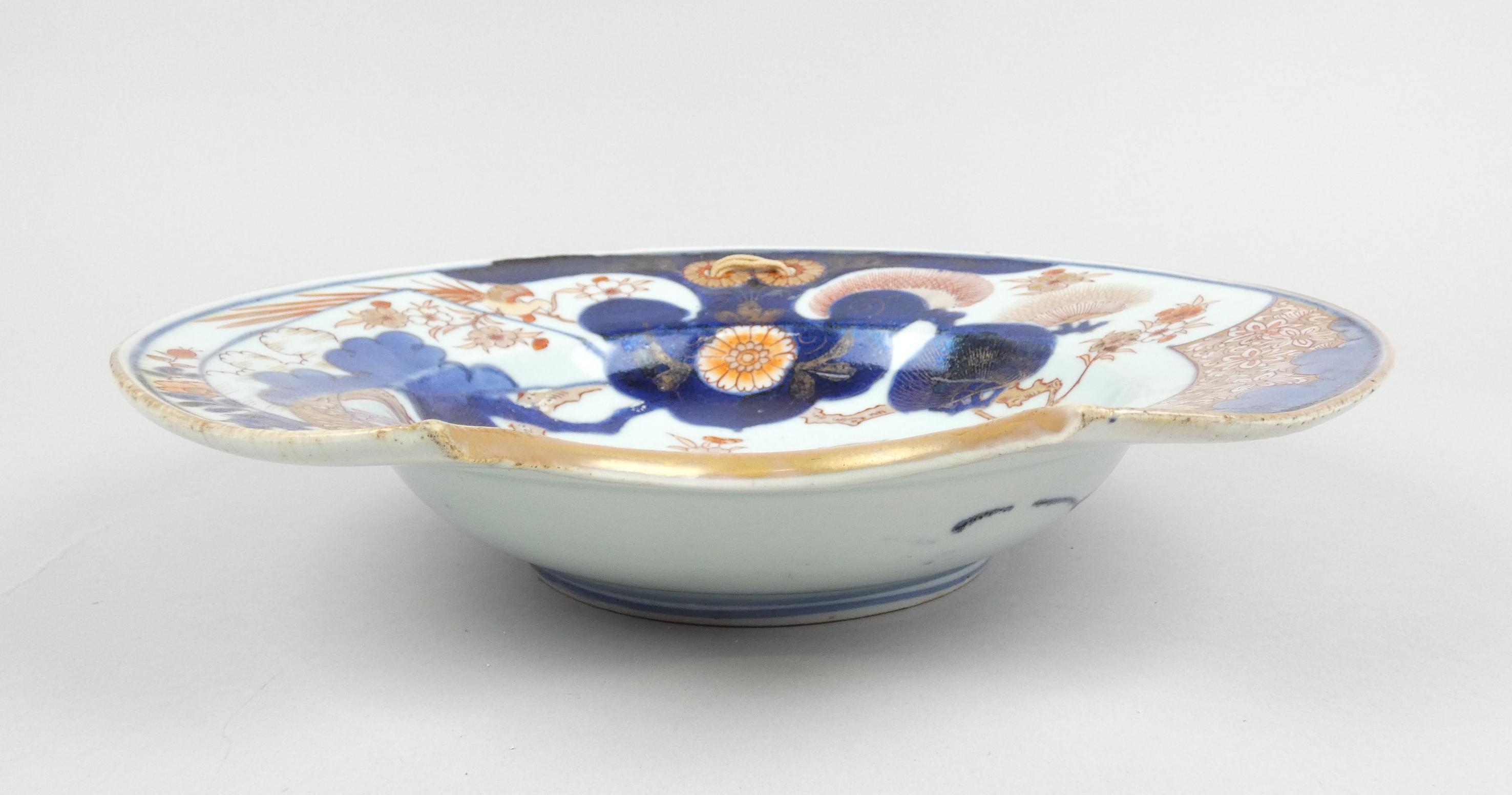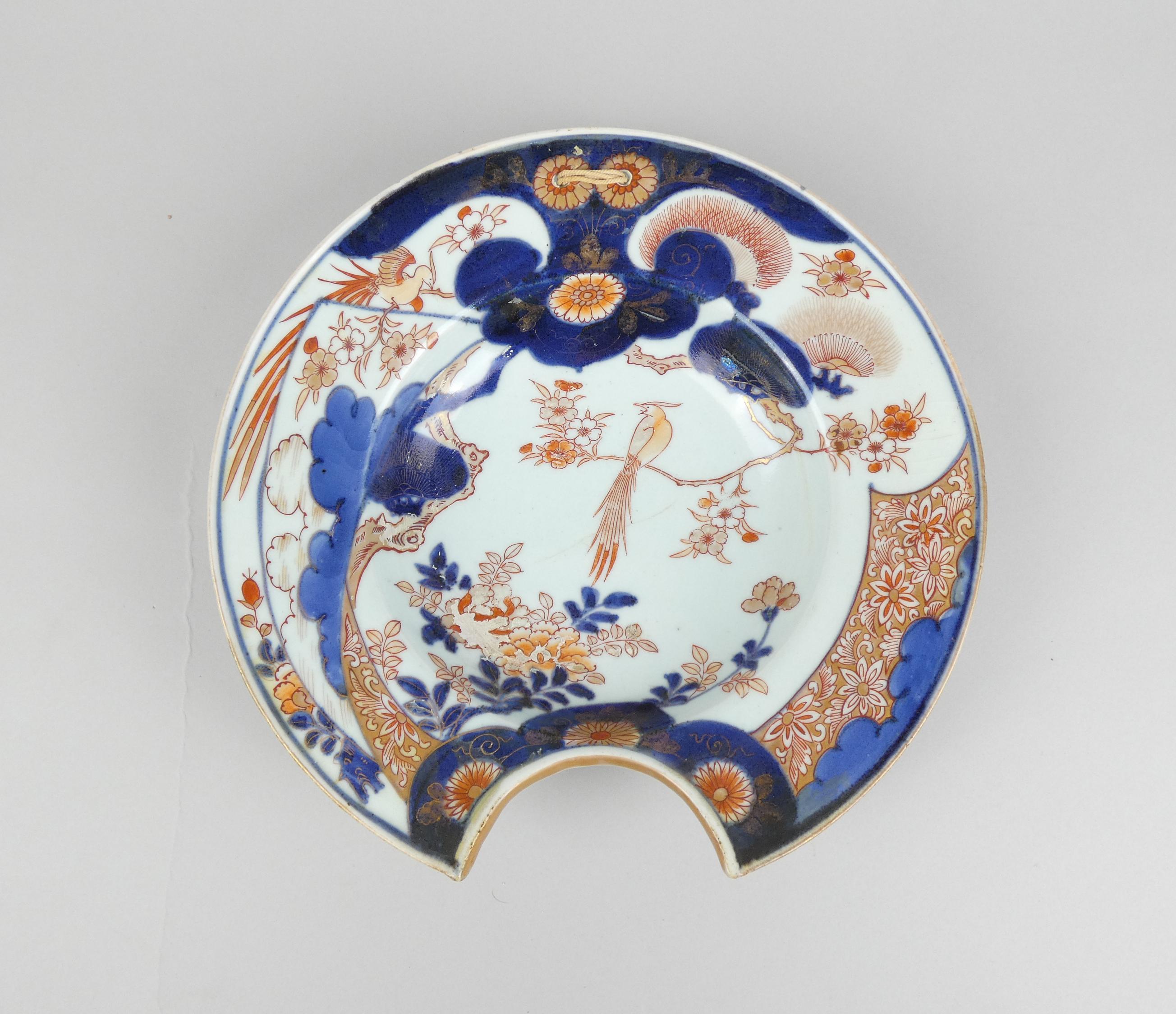 Asiatique : Plat à barbe en faïence (1 chev)