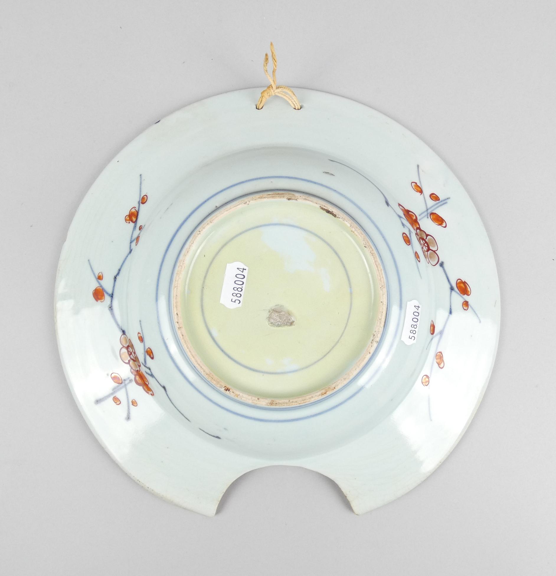 Asiatique: Plat à barbe en faïence (1 chev) Diam:28cm