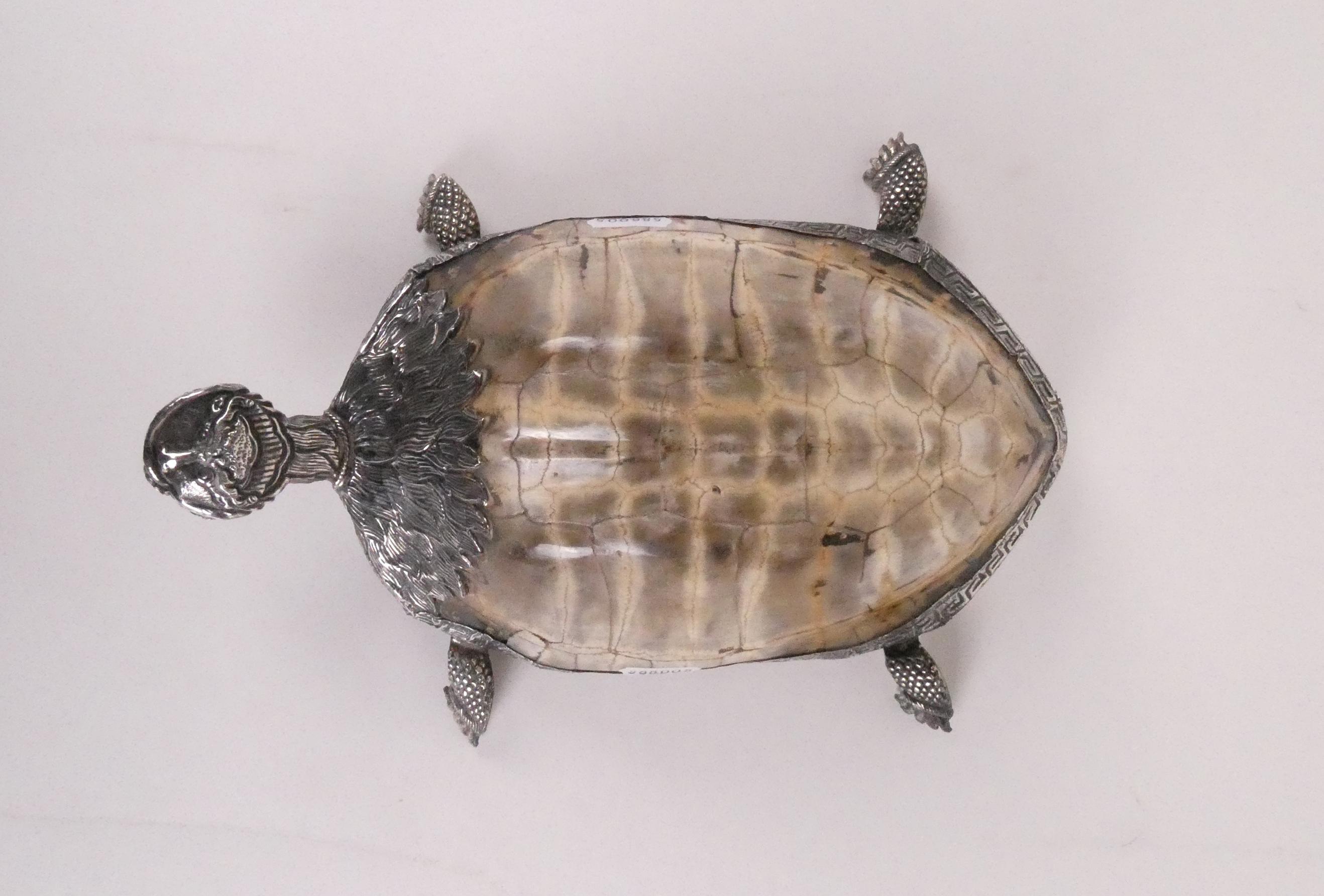Asiatique : EU ONLY Cabinet de curiosité possible carapace de tortue de Floride travail probable Tibétain tête en argent reste du corps en métal argenté