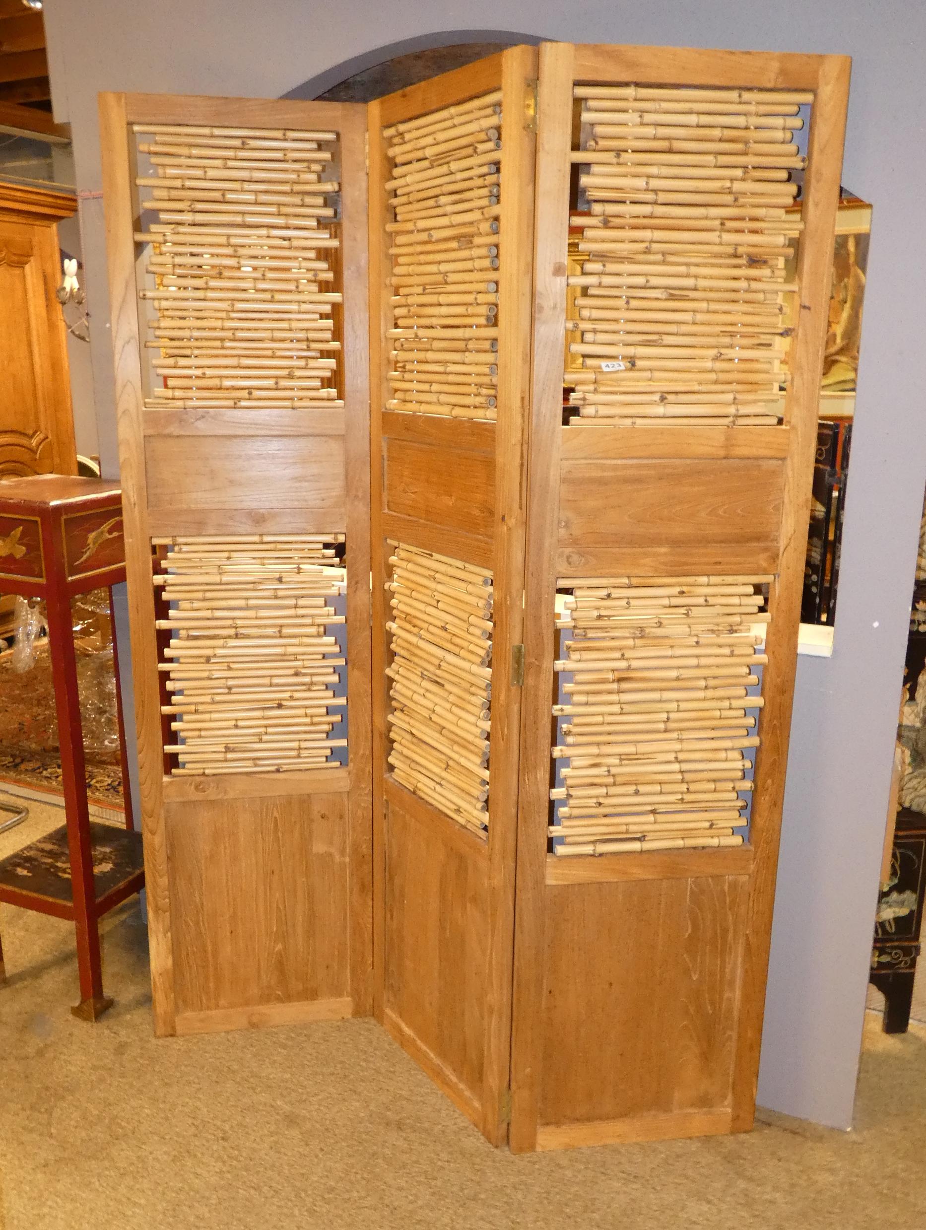 Meuble : Paravent en teck et bambou (usure d'usage)