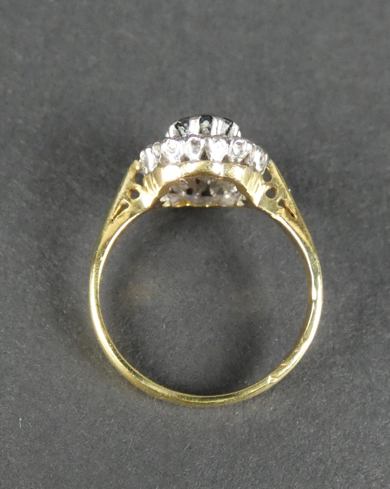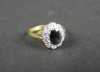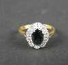 Bijou : Bague en or jaune et blanc 18K sertie d'un saphir ovale entouré de diamants