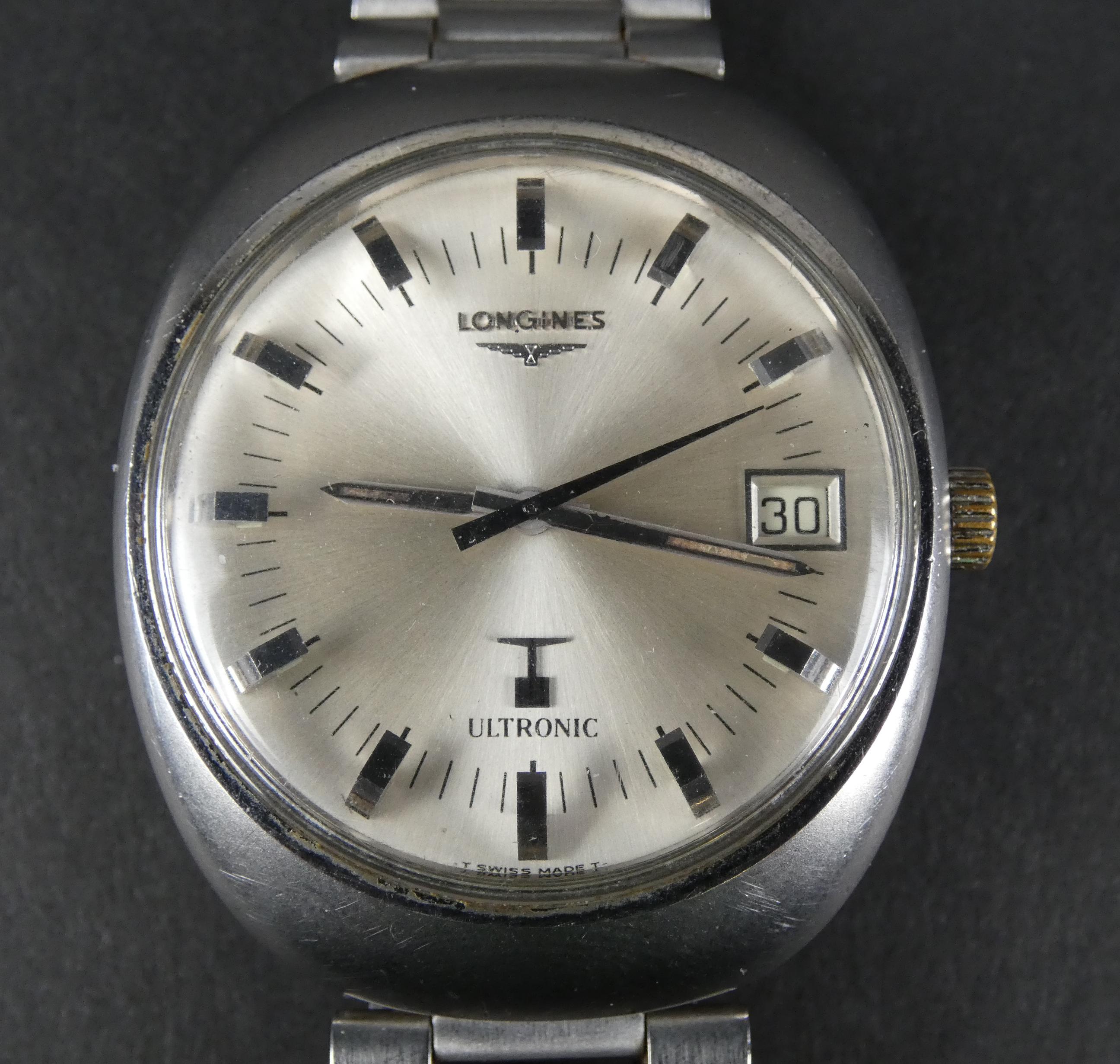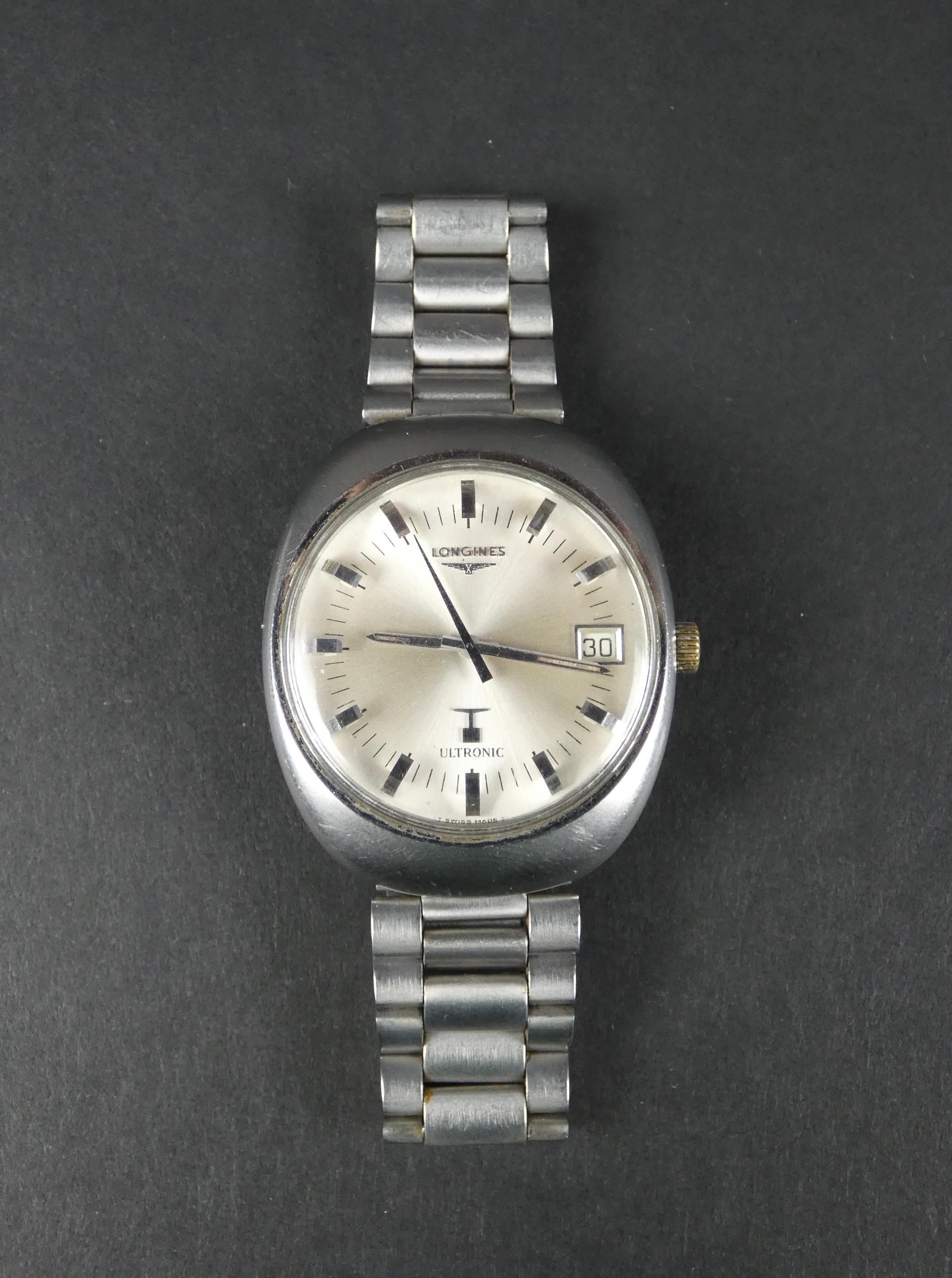 Bijou: Montre bracelet d'homme LONGINES Ultronic mvt à quartz (En état, couronne remplacée) boitier acier 37x42mm bracelet acier