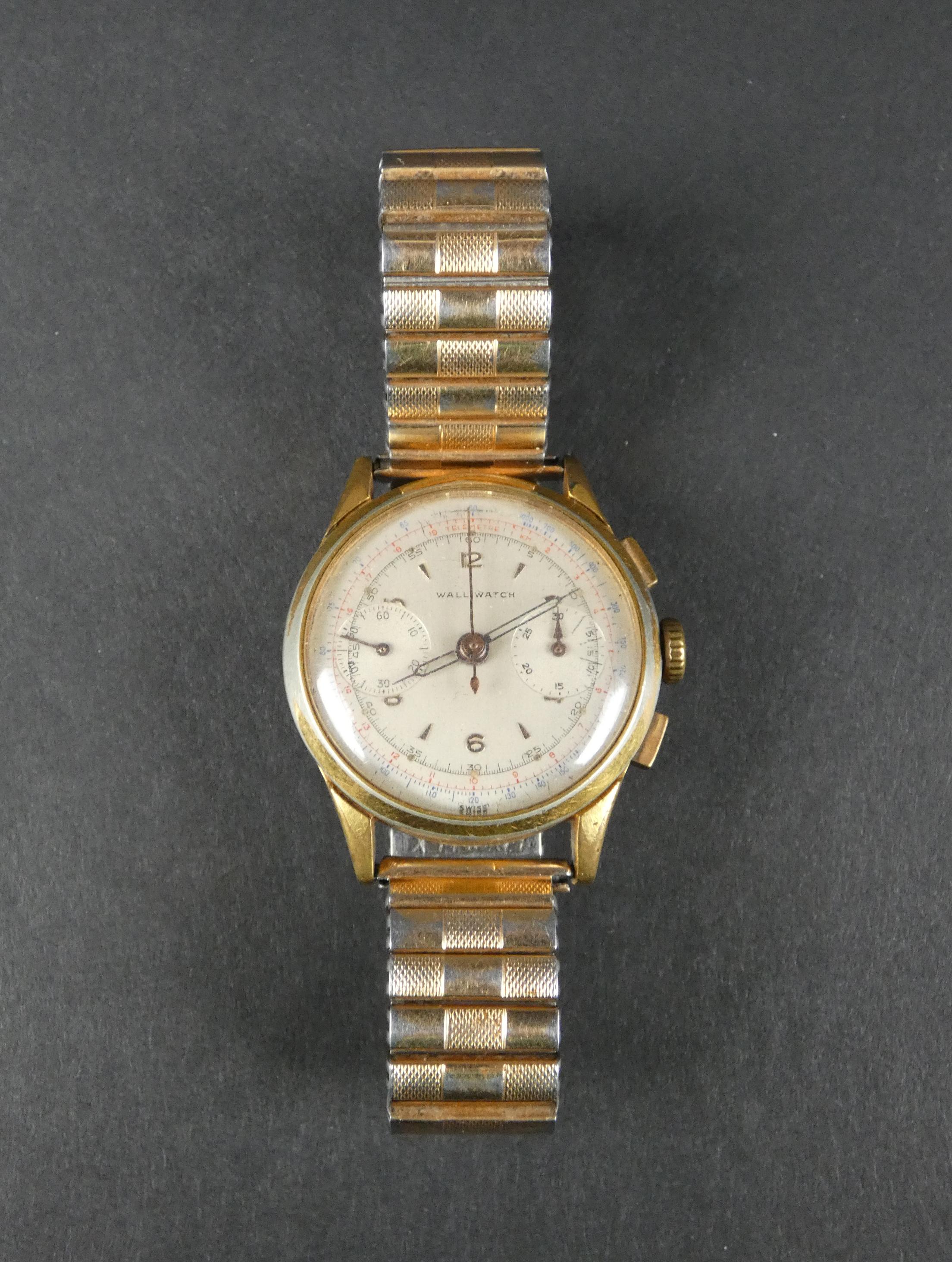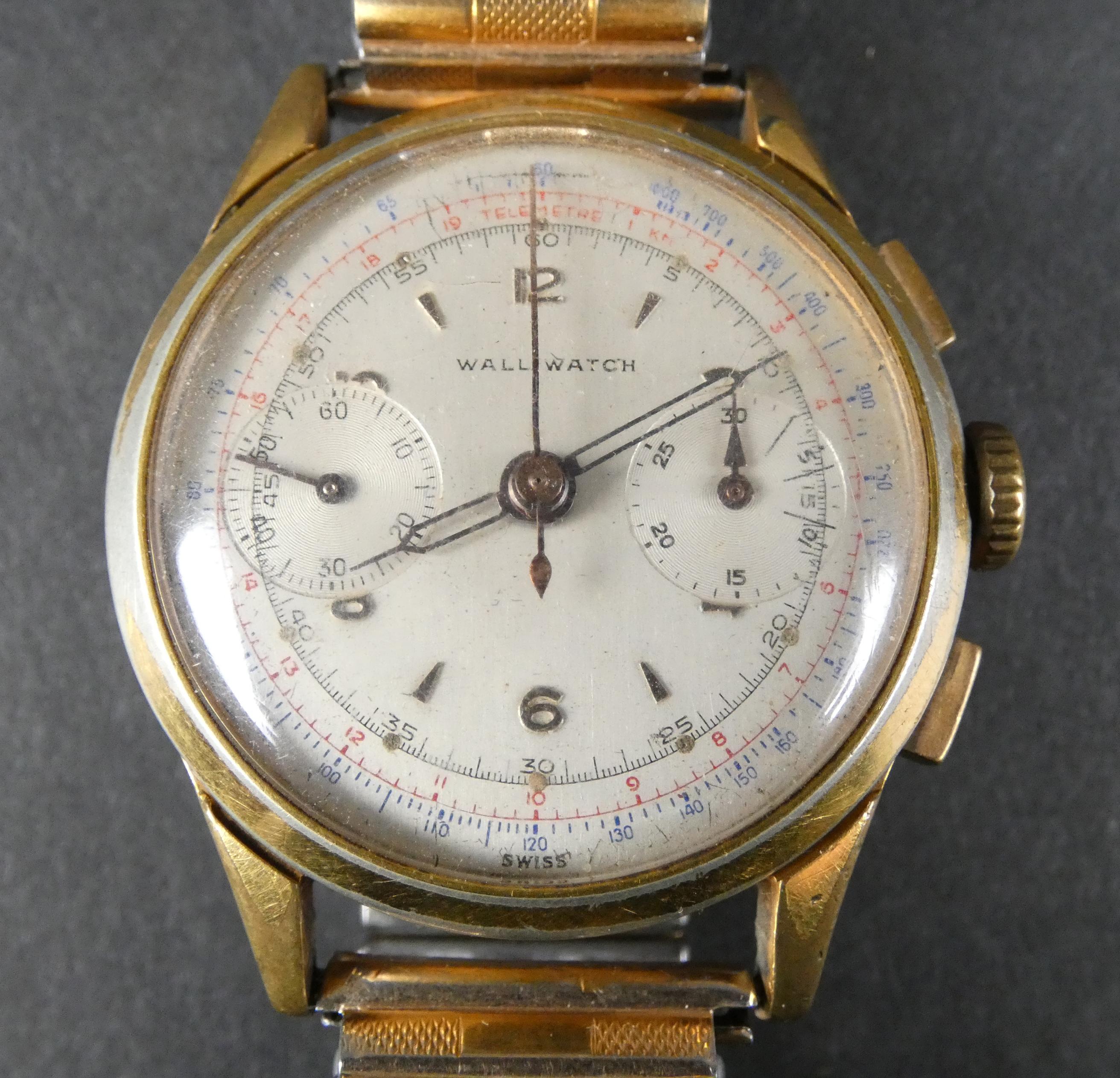Bijou: montre bracelet d'homme Wall Waych Chronographes et échelle tachymétrique mouvement à remontoir (en état, usures)