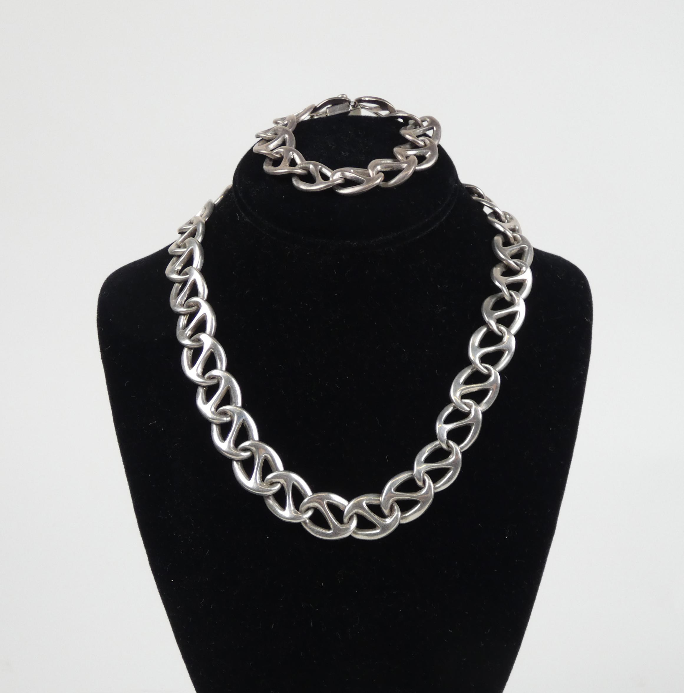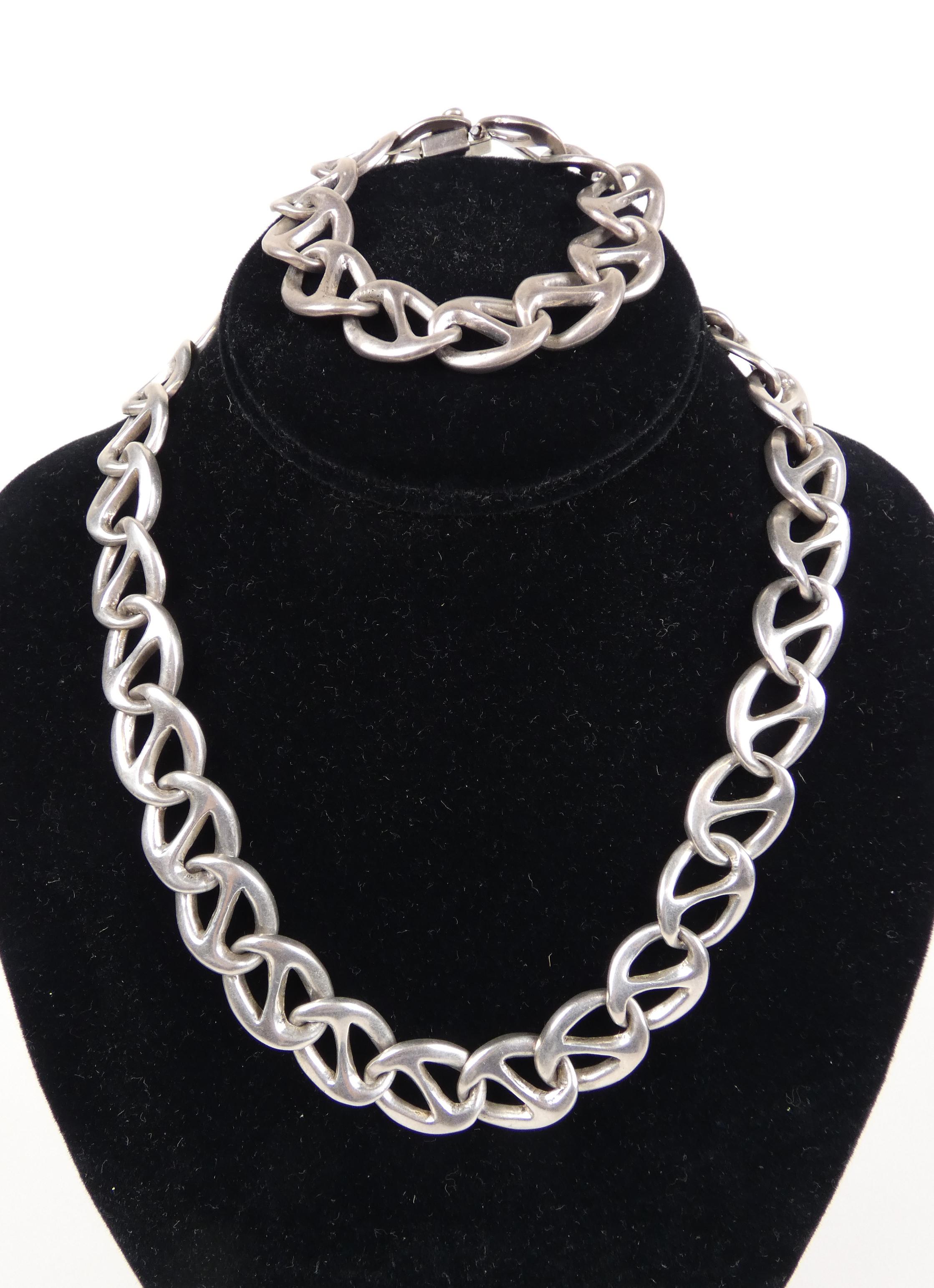 Bijou: Parure (collier et bracelet) en argent poinçon mexico 925 P: 167g