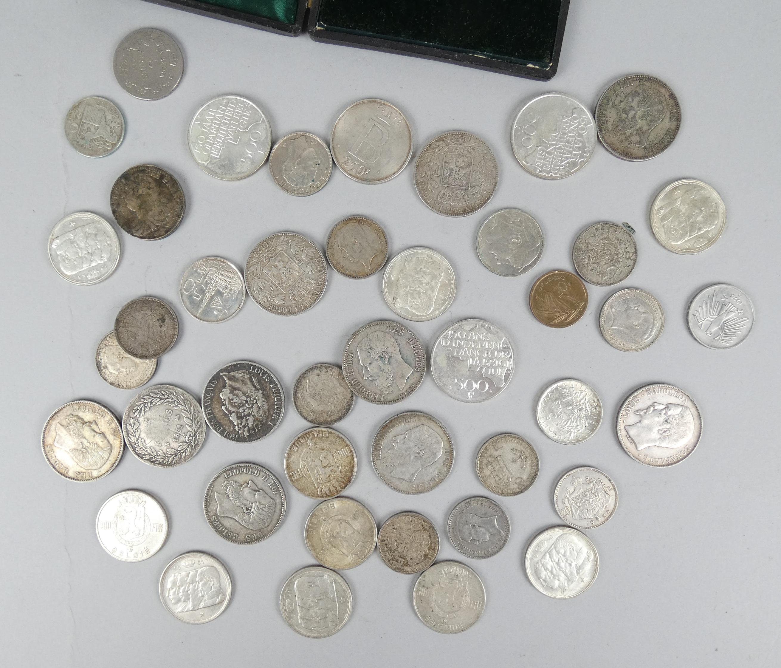Collection: Pièces de monnaie: beau petit lot en argent total 516g d'Ag pur (dont 1 Morin N°160a) + médaille de Leopold II -Braconnage- et 1 pièce de 2 sols de l'an 4 1792 W (B+)