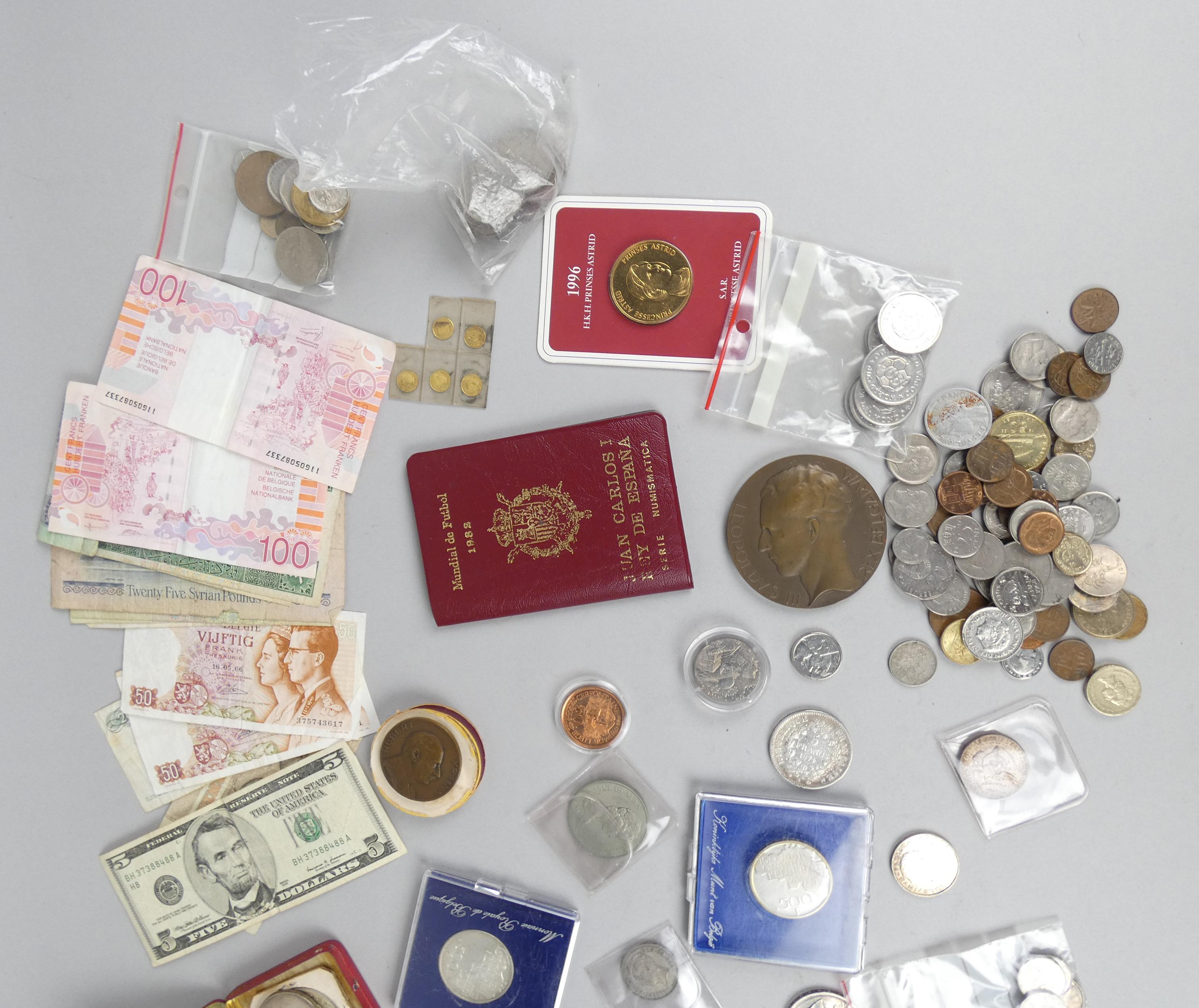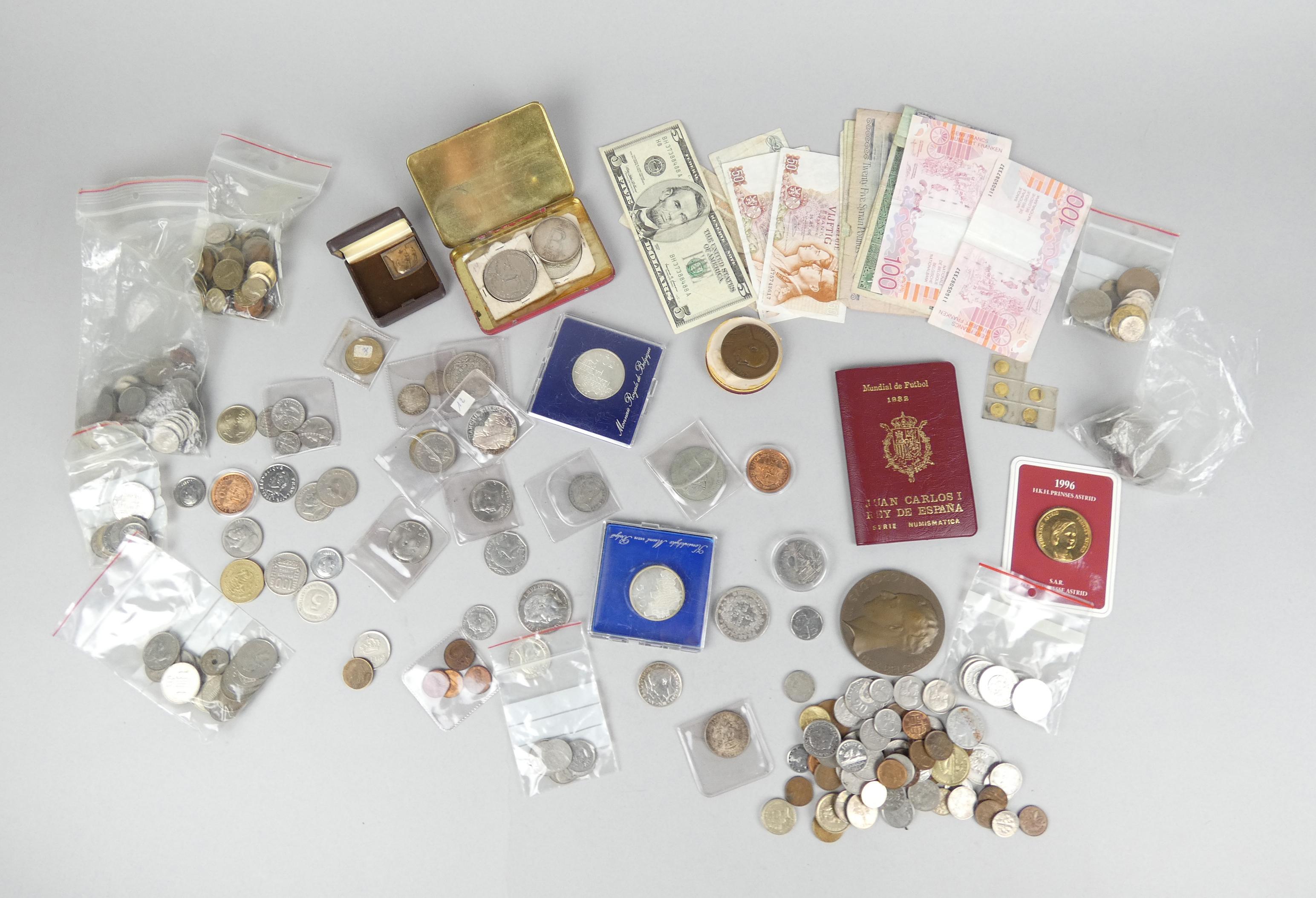 Collection de pièces de monnaie: au kilo dont 174g d'argent pur dont: 1 collection Juan Carlos I rey de Espana,1 médaille princesse astrid 1996, billets, 5 republica marini 1898