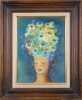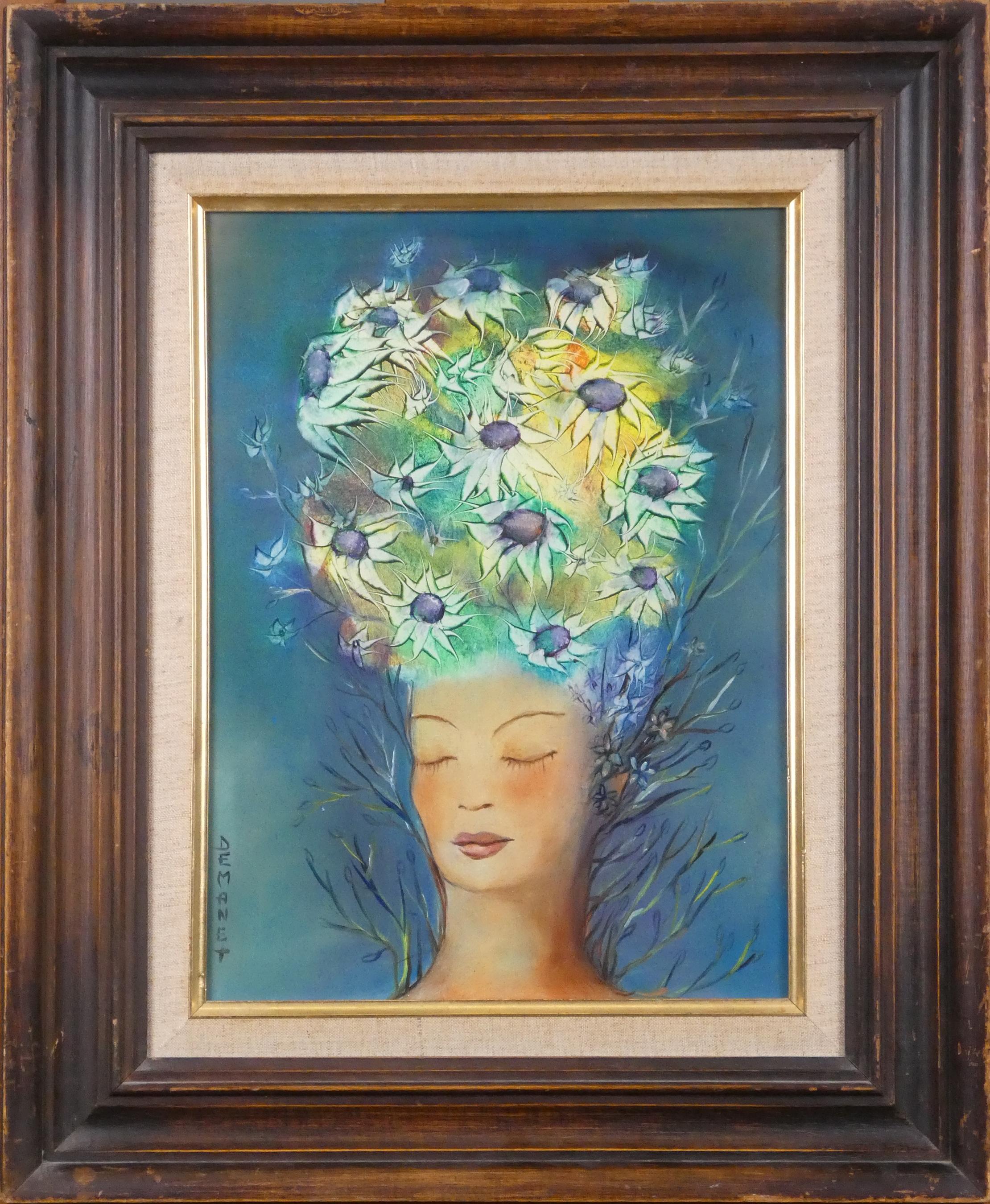 Tableau HSP - Dame aux cheveux fleuris - signé DEMANET 45x35cm cadre bois