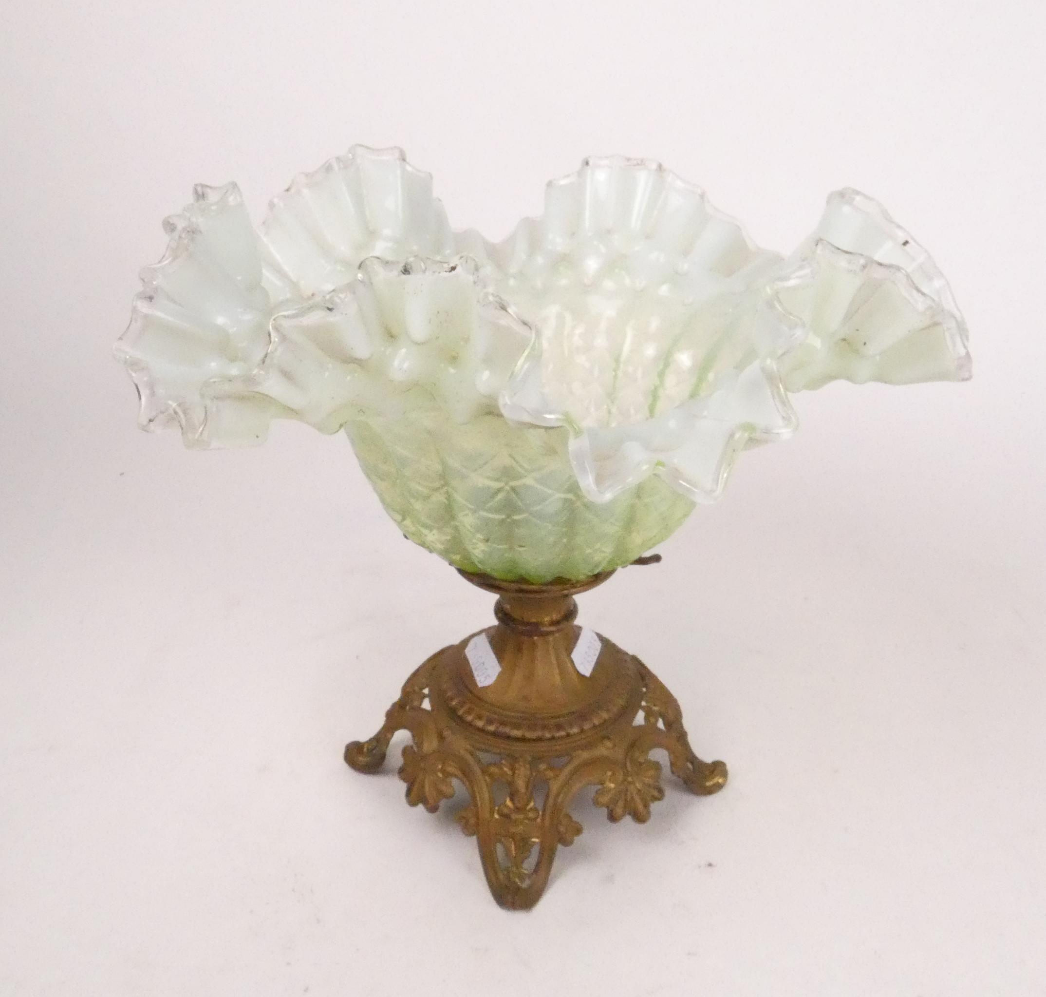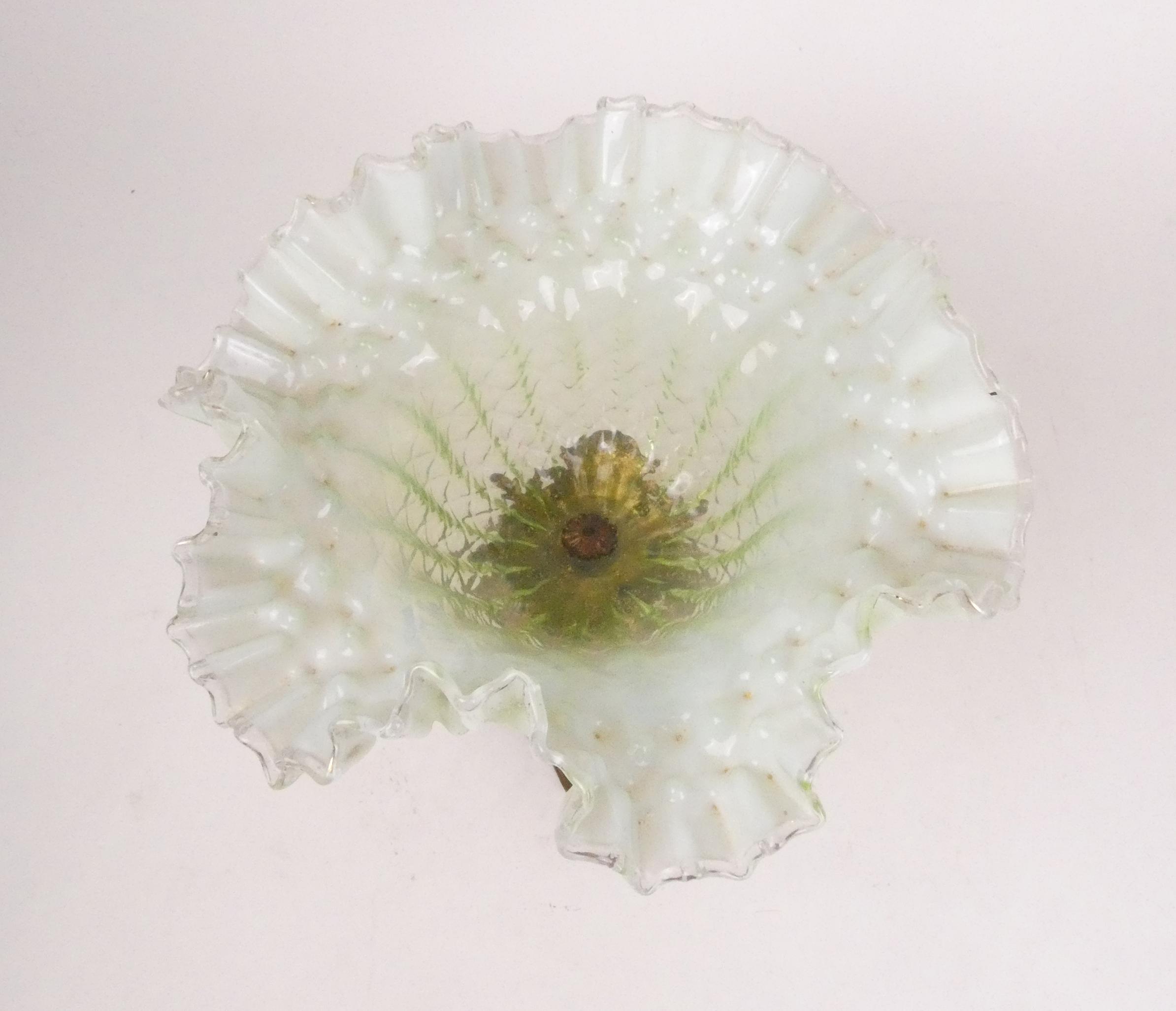 Objet : Coupe sur pied en verre moulé URANE/ ouraline et piètement en bronze H : 26cm Diam : 30cm