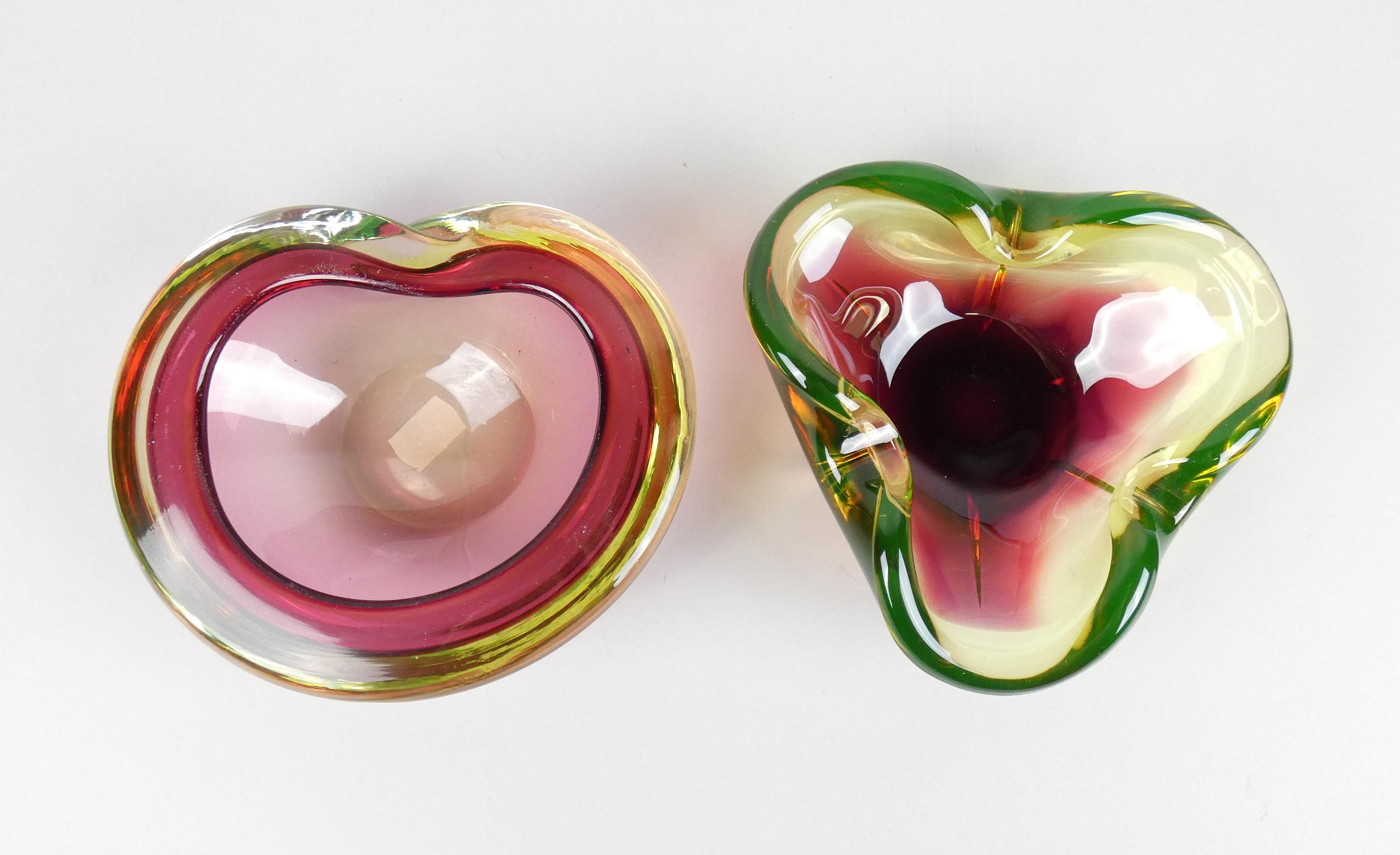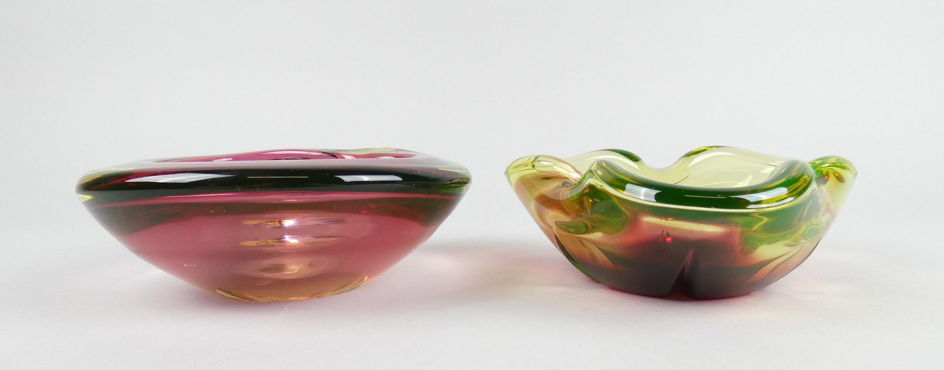 Verrerie: En verre URANE/Ouraline: vide-poche 6x17x15cm et cendrier (pt ecl)