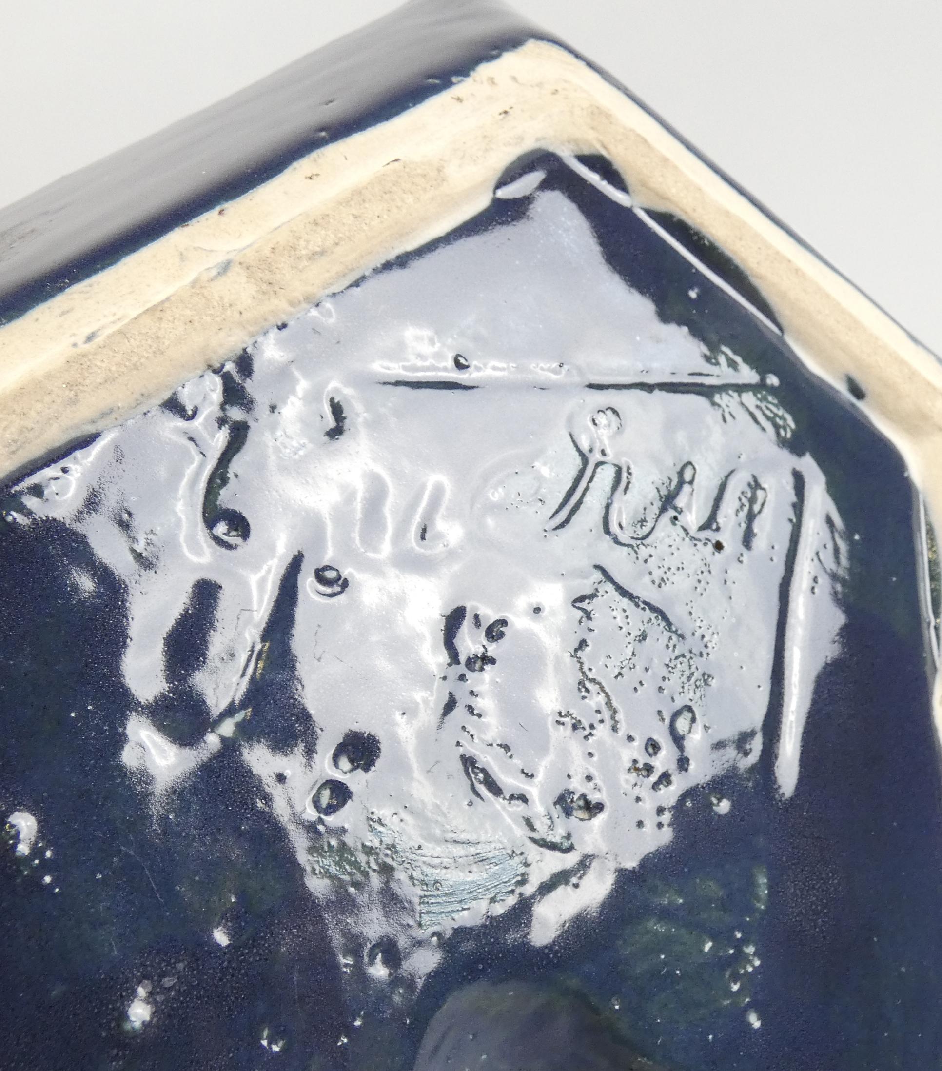 Céramique : Cendrier GUERIN (sous la base) faïence - mains tenant un vase avec flammes - 28x23cm inscription et signé sur le coté GUERIN Jules