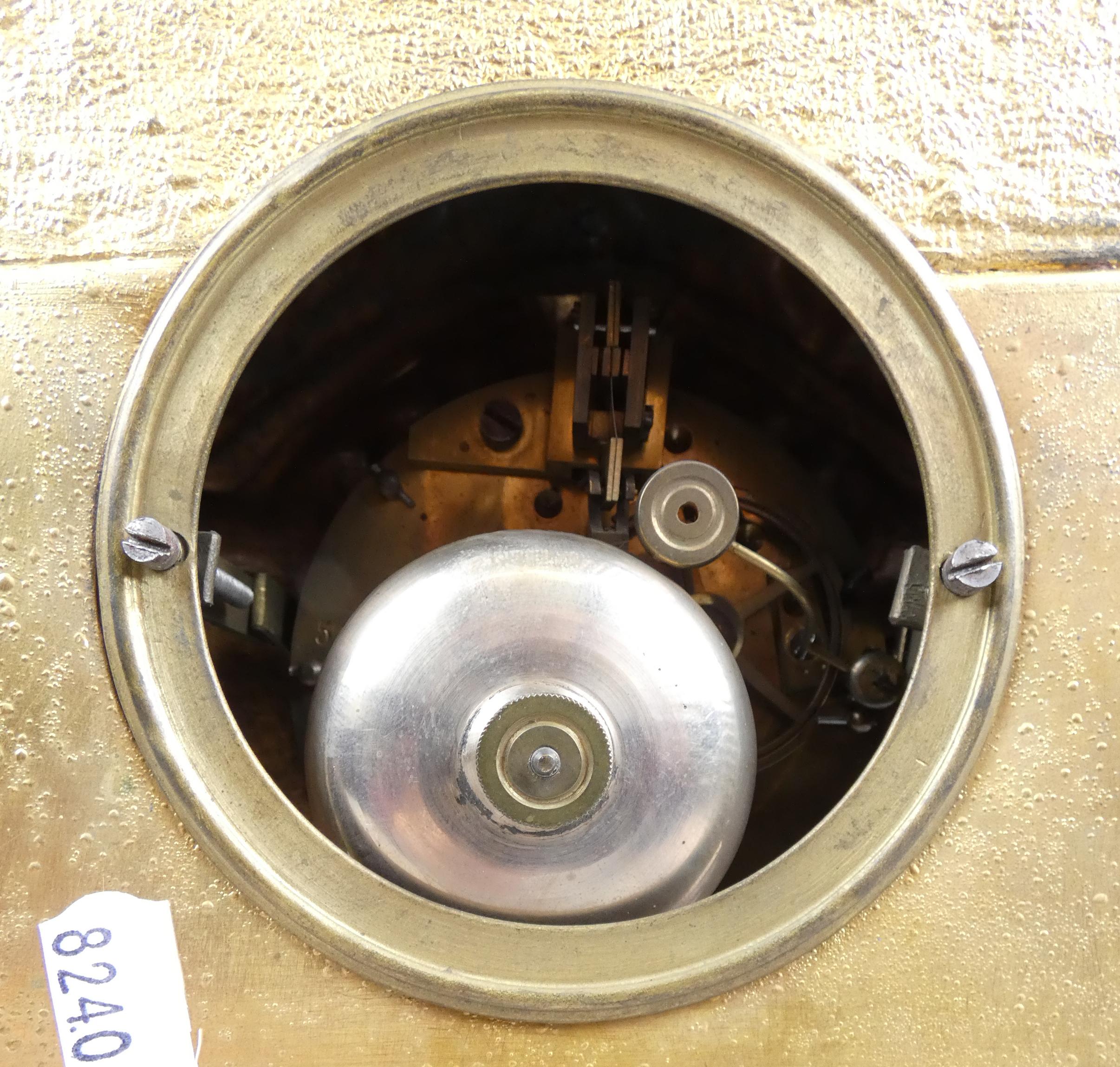 Horlogerie: Horloge régule doré NAPIII surmontée d'une dame au fusil sur son cheval H: 36cm sous globe en verre H tot:48cm