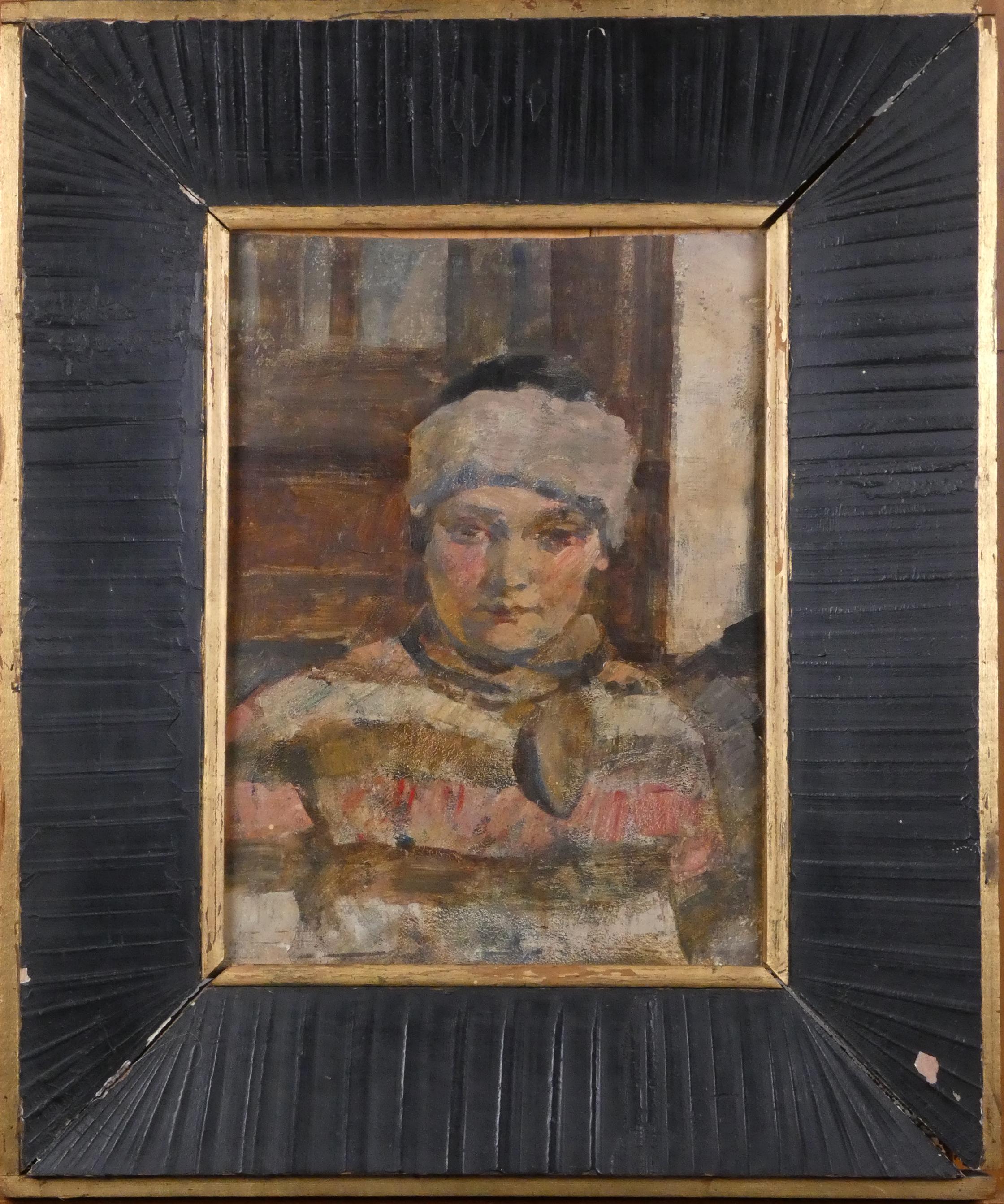 Tableau HSP -Portrait jeune fille- attribué à *DE MEUSE E.* (Eliane) (1899, 1993) 35x27,5cm cadre bois