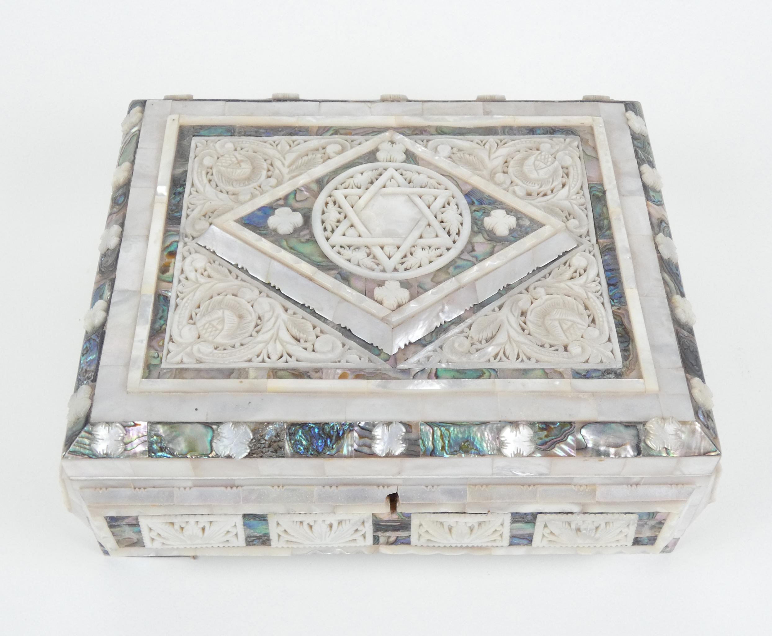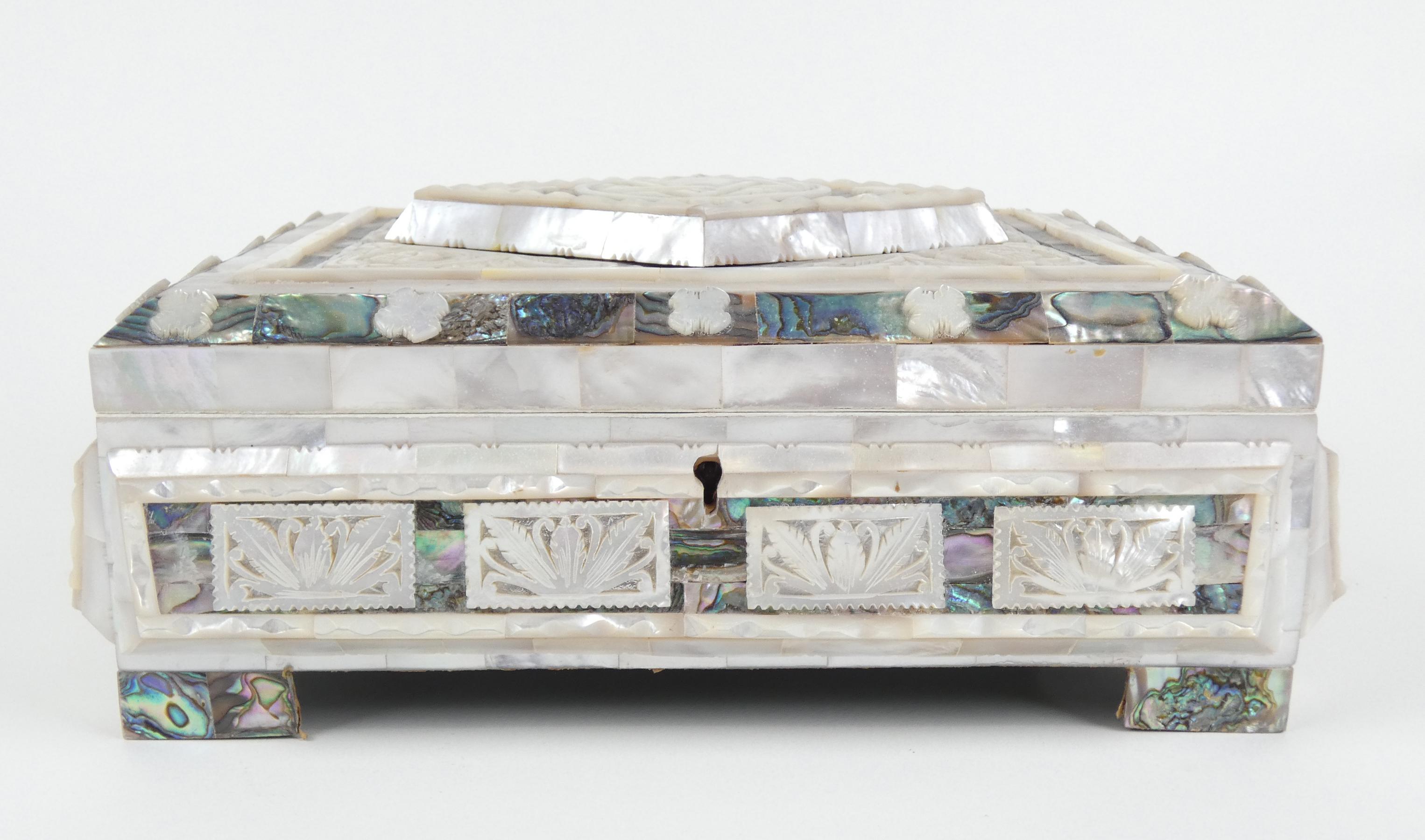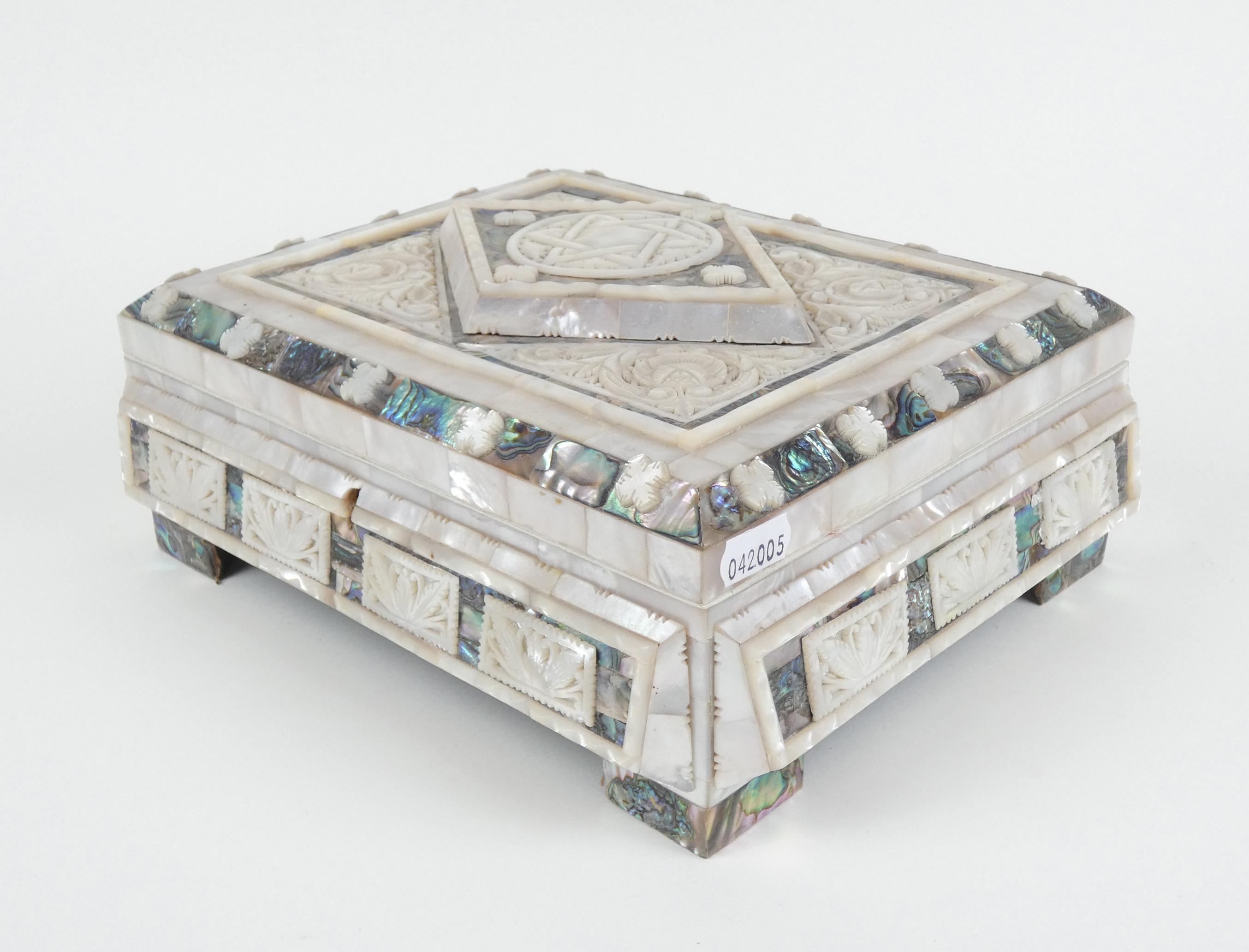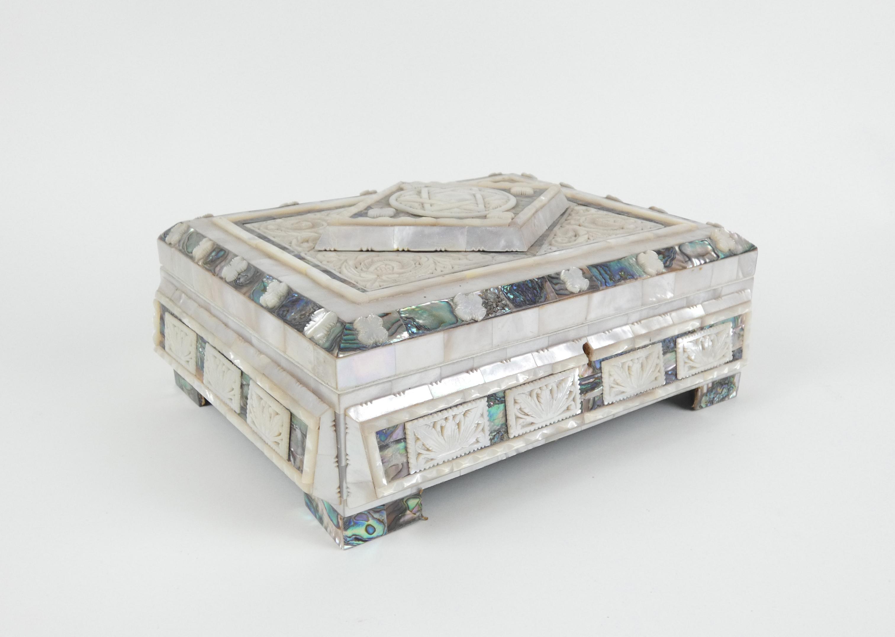 Objet: boite à bijoux nacre sculptée 11x27x22cm
