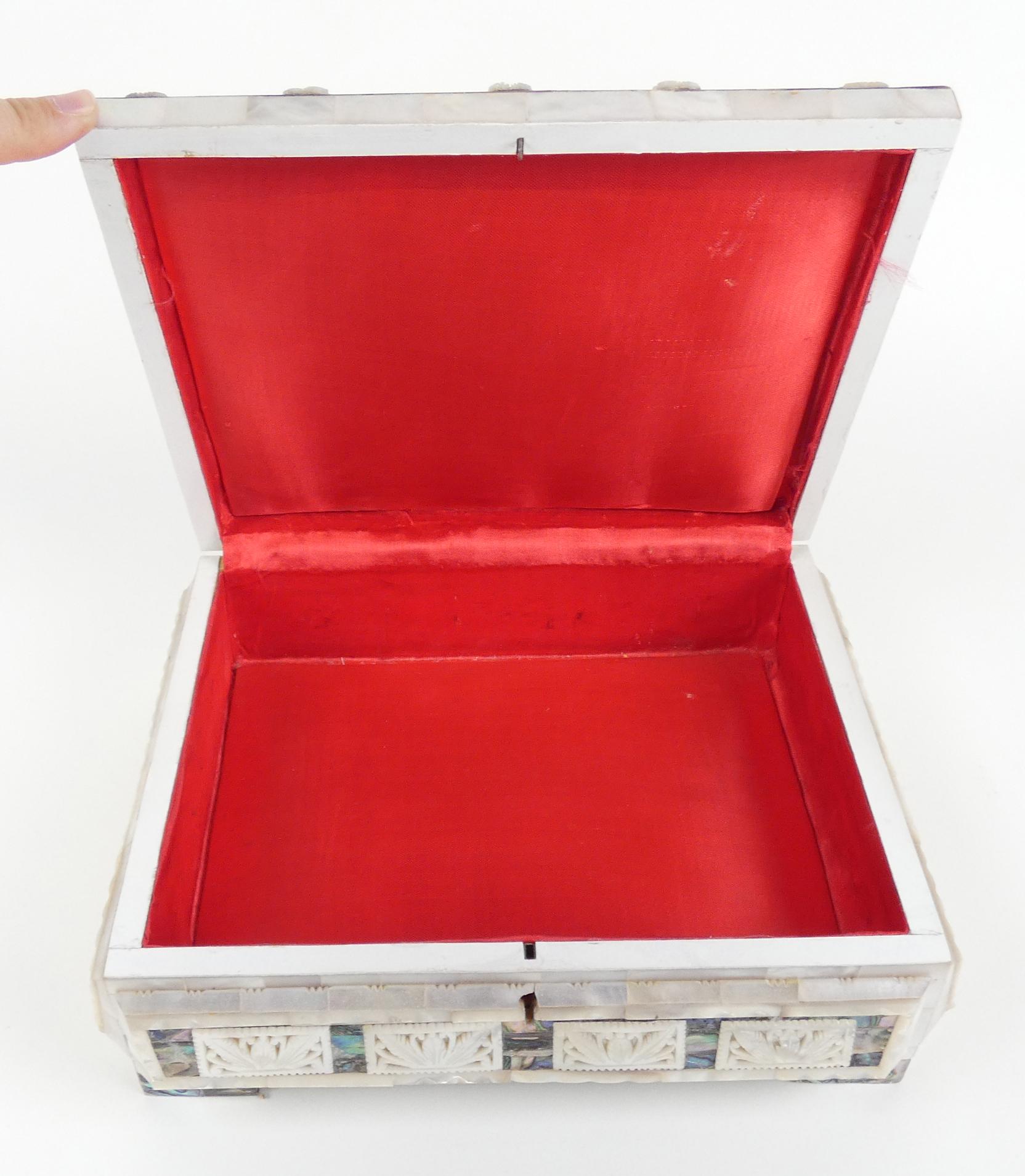 Objet : boite à bijoux nacre sculptée 11x27x22cm