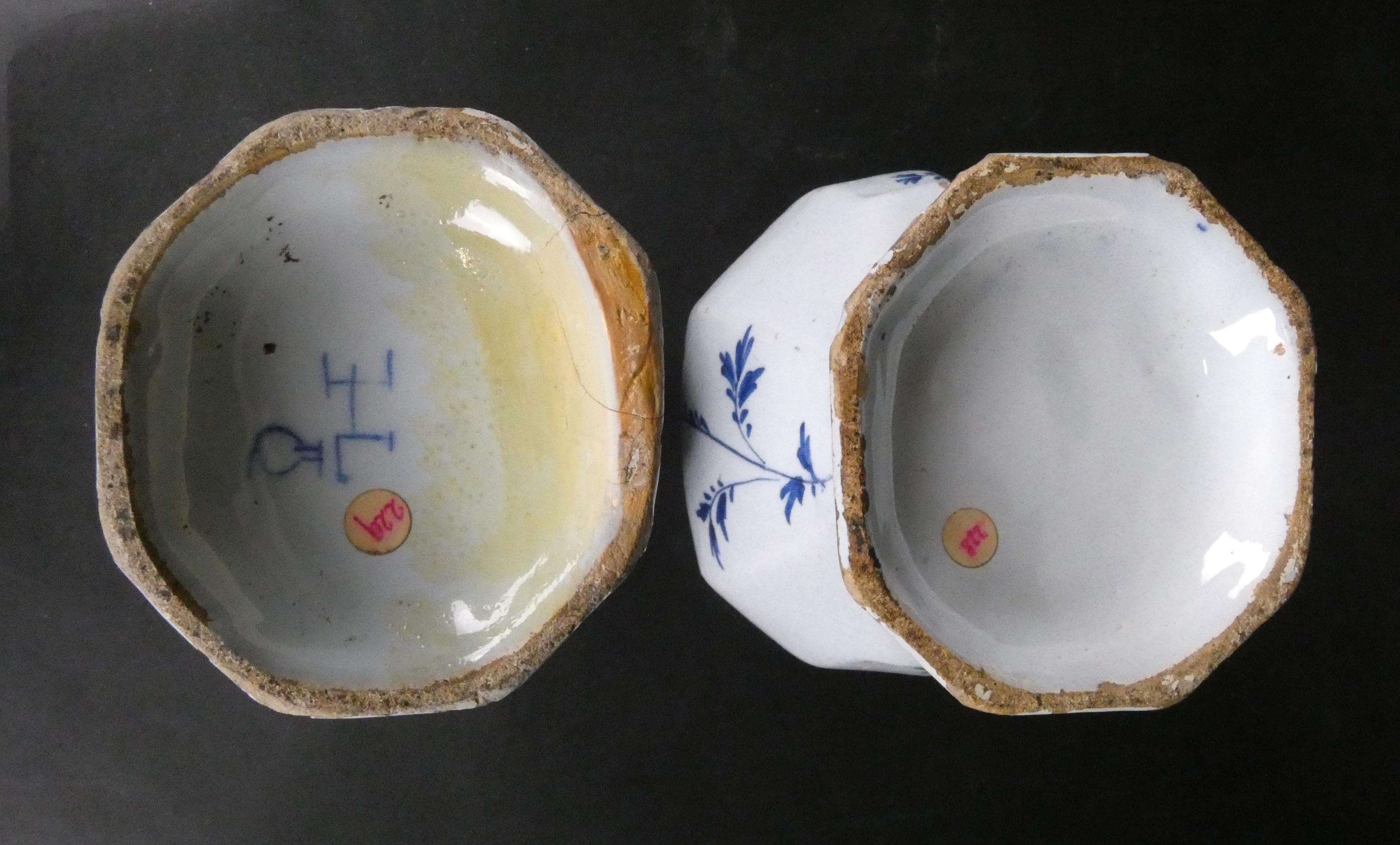 Céramique : 2 potiches couvertes DELFT en faïence 18eS (ds l'état)