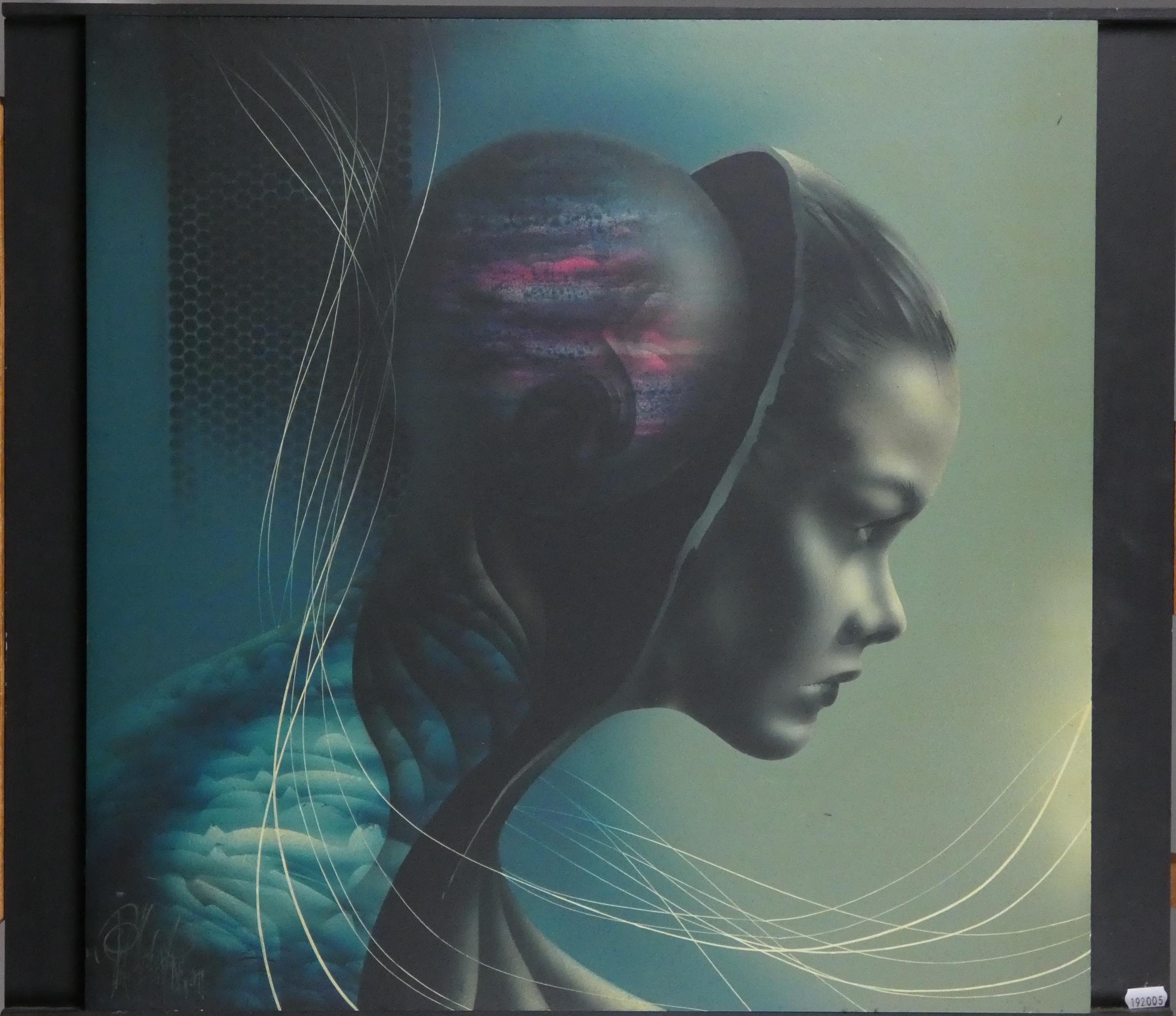 Tableau: aerographe sur bois (traces frot.) -Mémoire de Vie- daté 2011 signé *LEFEVRE P.* (Pol) (1942, 2023) 60x60,5cm