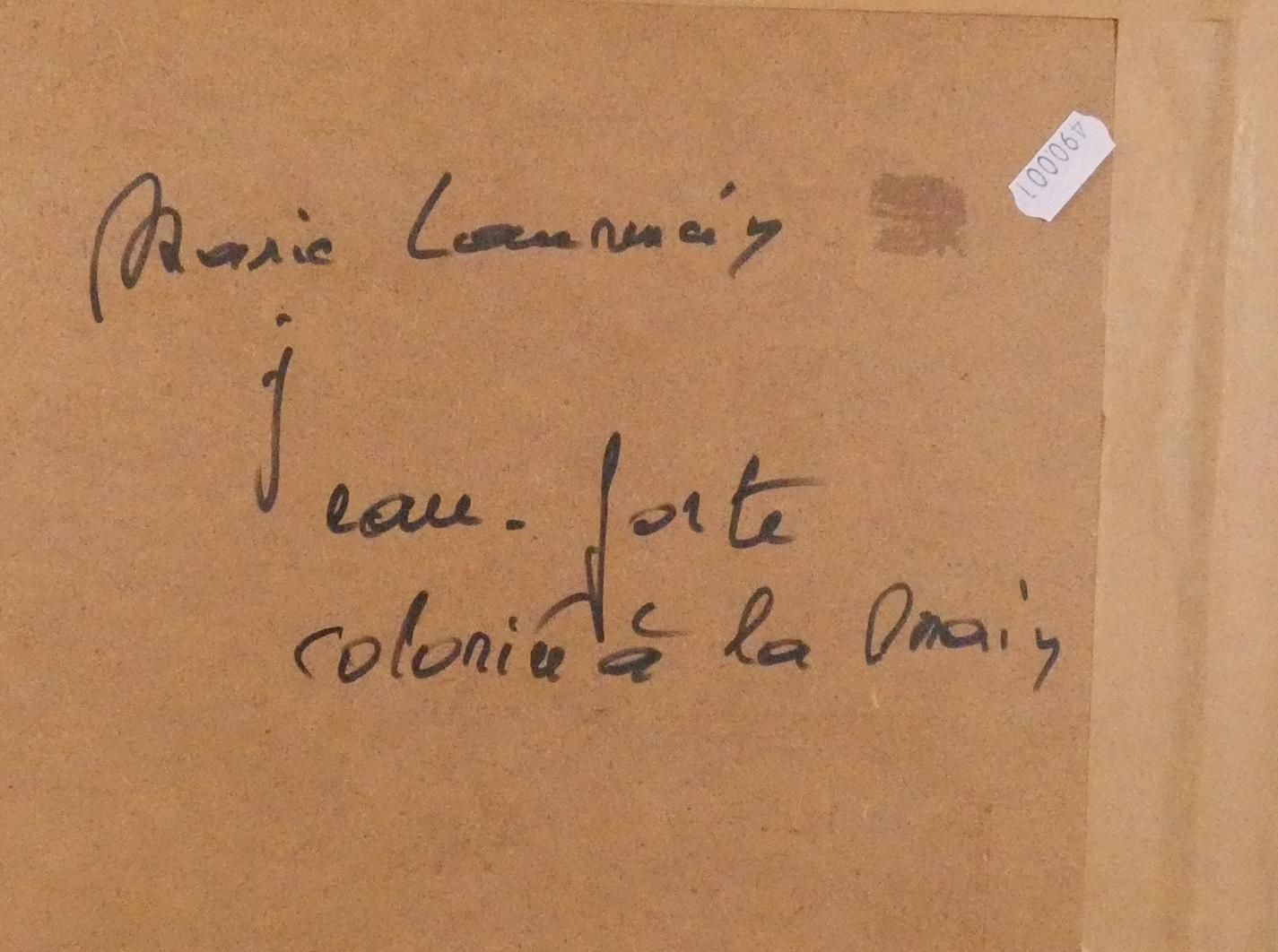 Estampe: Eau-forte couleur rehaussée à l'aquarelle -Jeune Fille à la Guitare- d'après *LAURENCIN M.* (Marie) (1883, 1956) 20x17cm cadre doré patiné