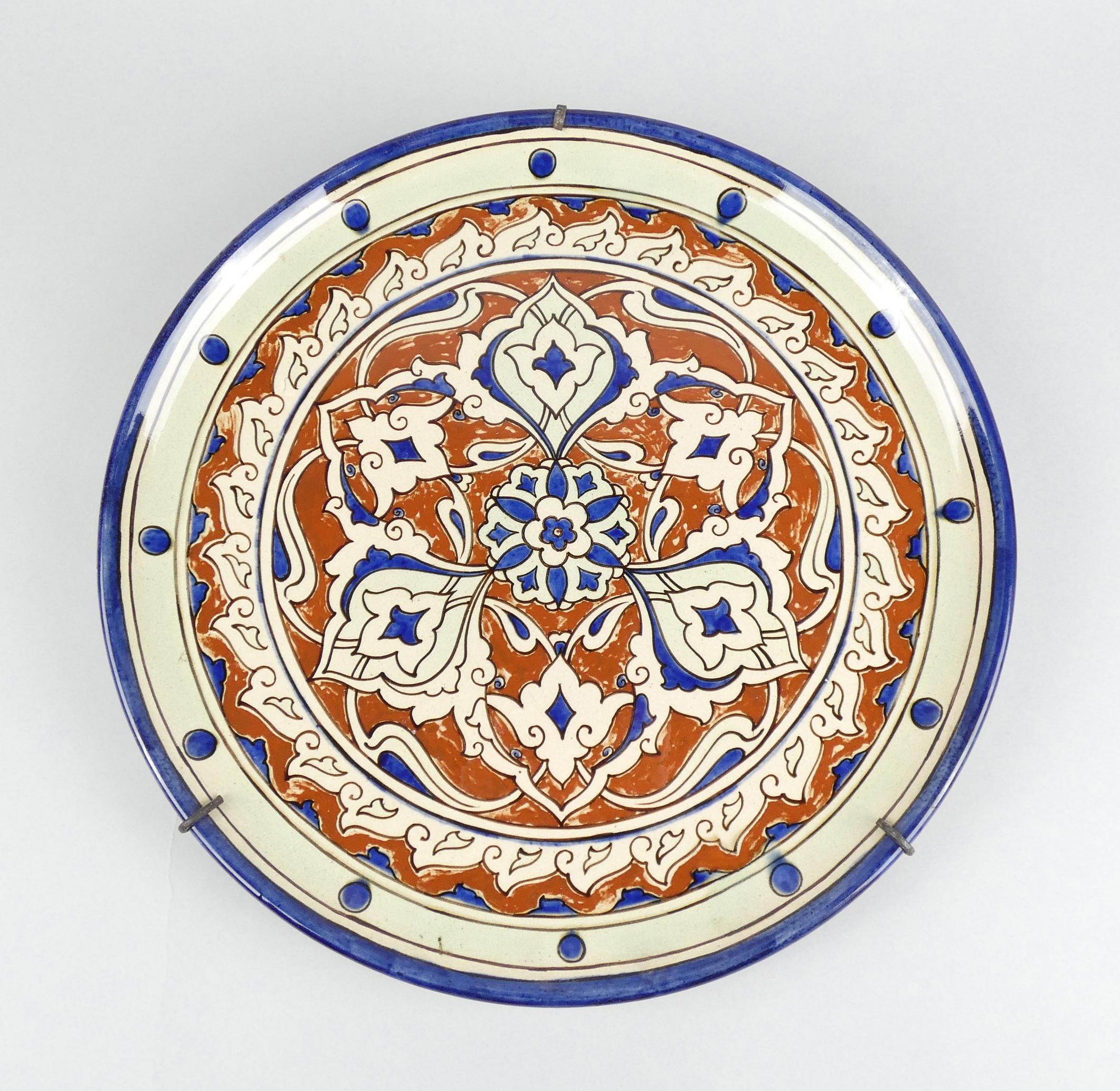 Céramique : Plat en faïence décor iznik signé au dos Henri Camier ? Golf Juan Diam : 40cm