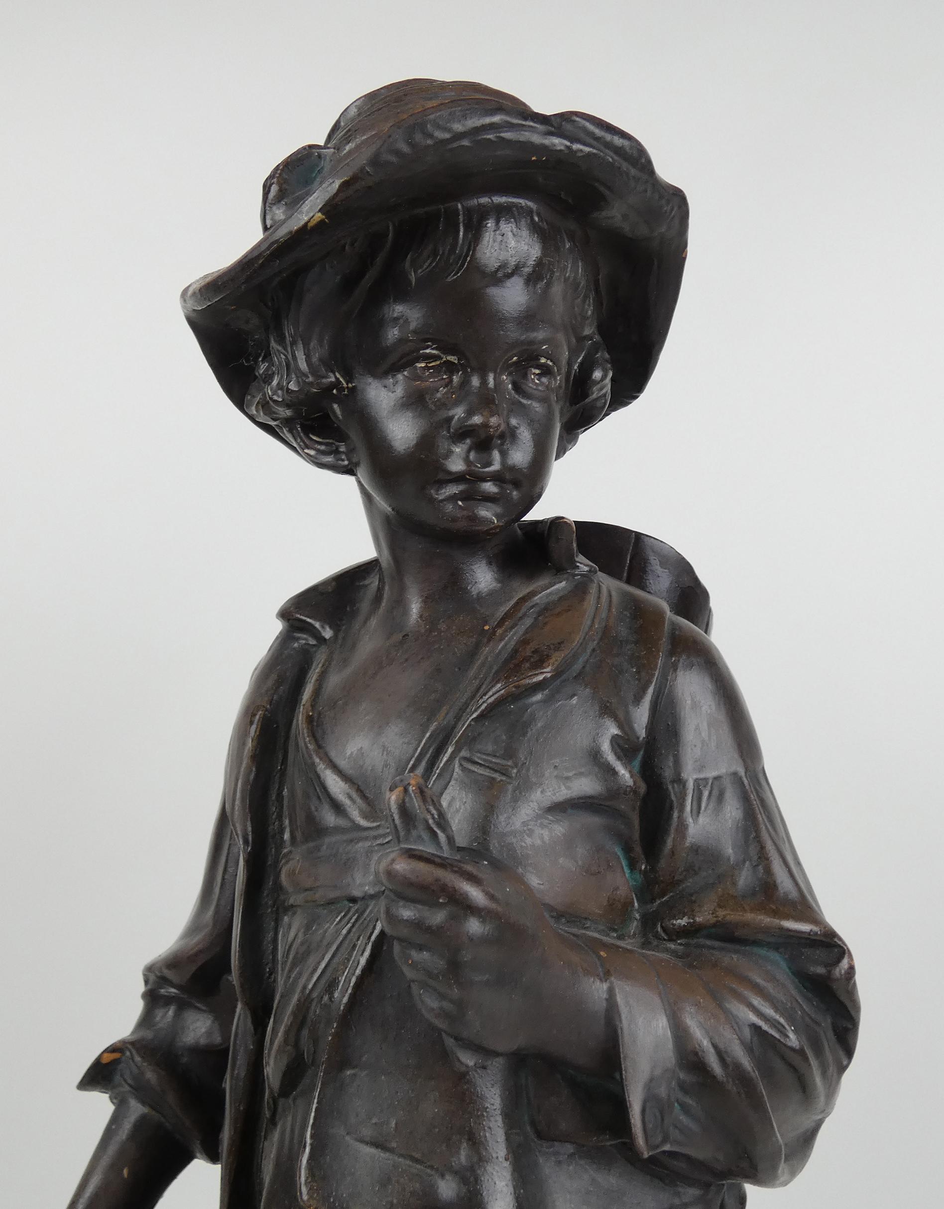 Sculpture: Terre cuite -jeune garçon- (pt ecl) attribué à Sarreguemine H:59cm