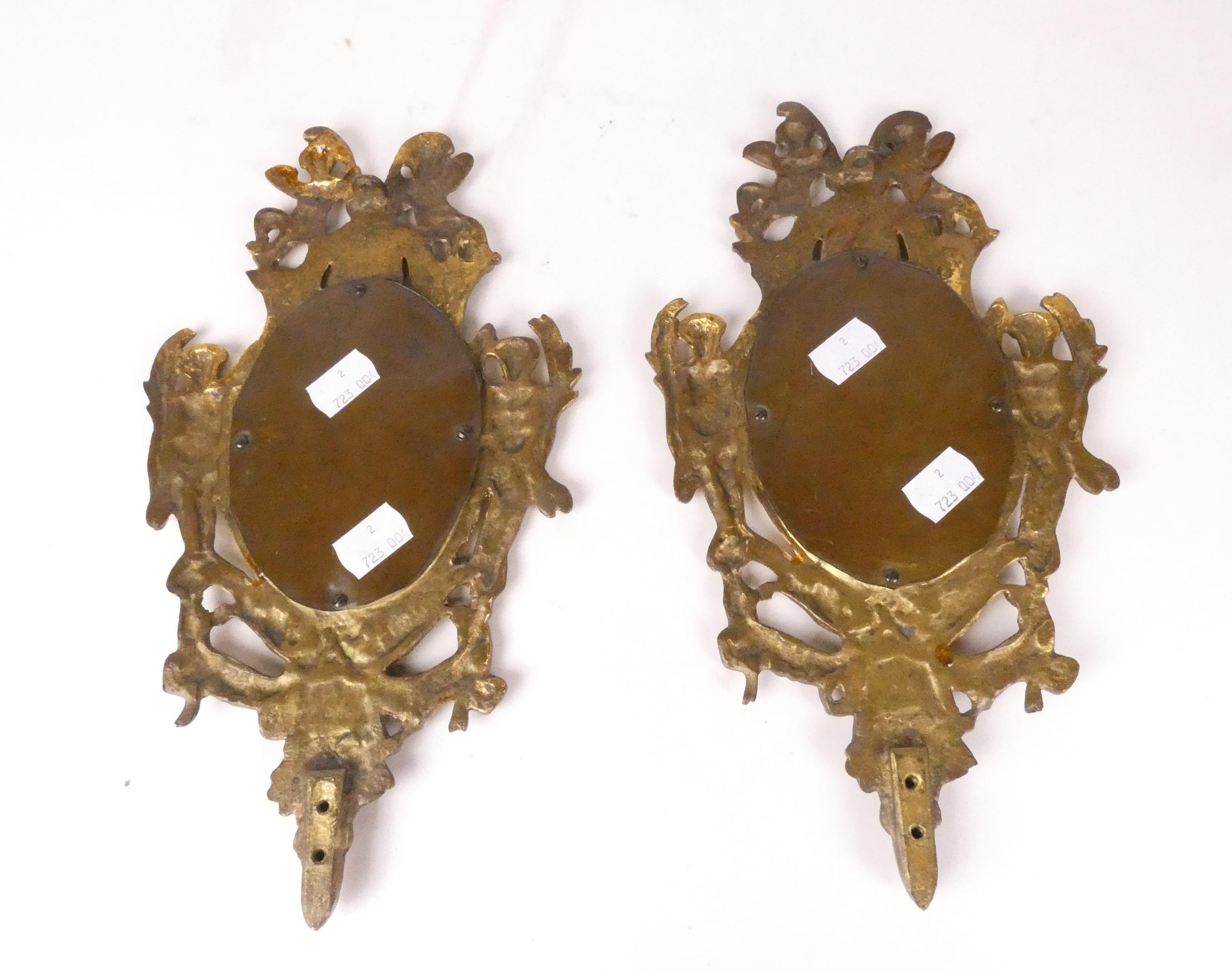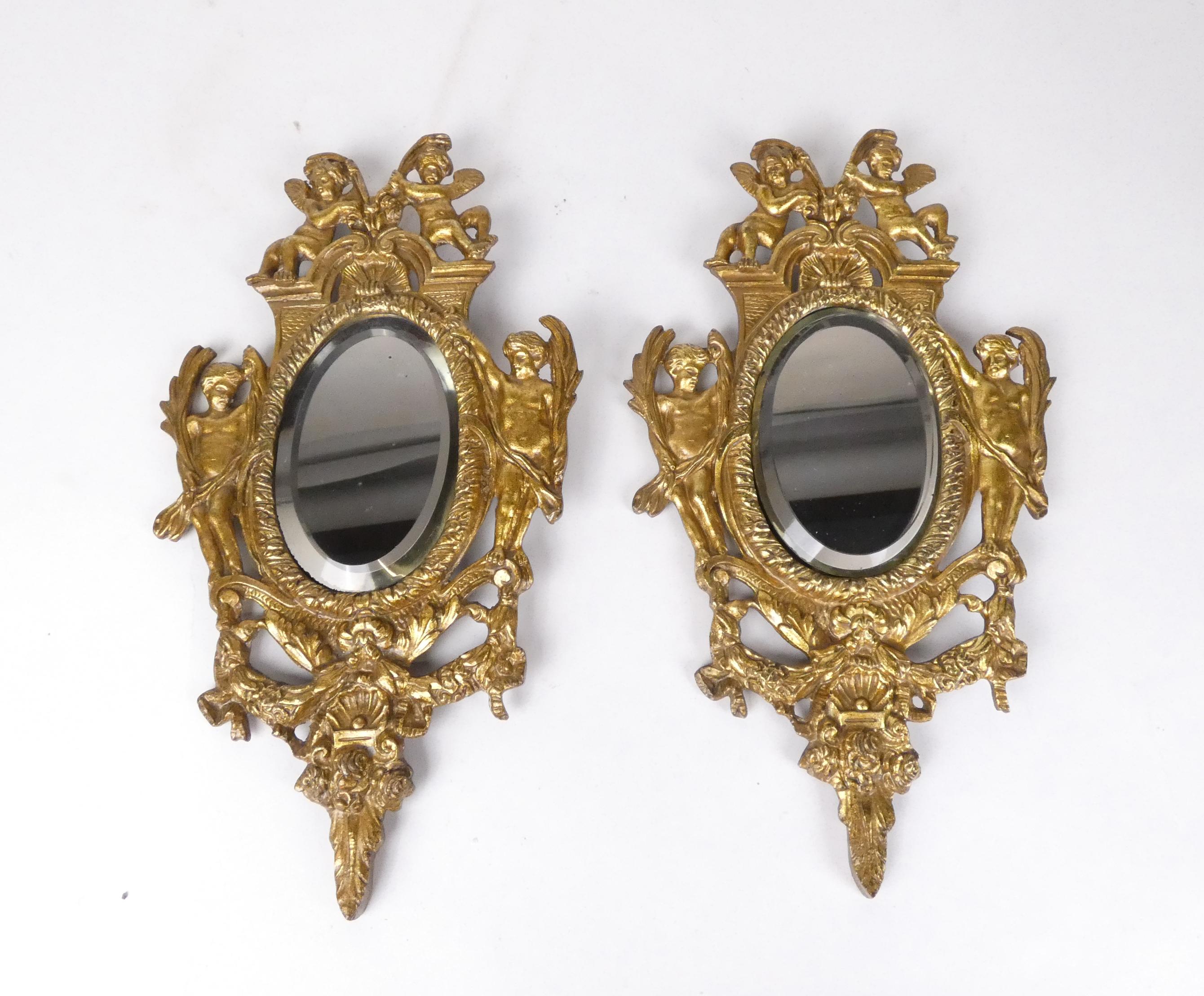 Meuble : Paire de miroirs aux angelots en bronze et verre biseauté 30x17cm