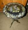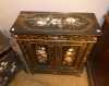 Meuble : (3pcs) Dressoir en bois laqué (acc) décor peint rehauts d'or incr. de nacre + guéridon tilt top décor de nacre + desserte à double plateau NAP III incr. nacre