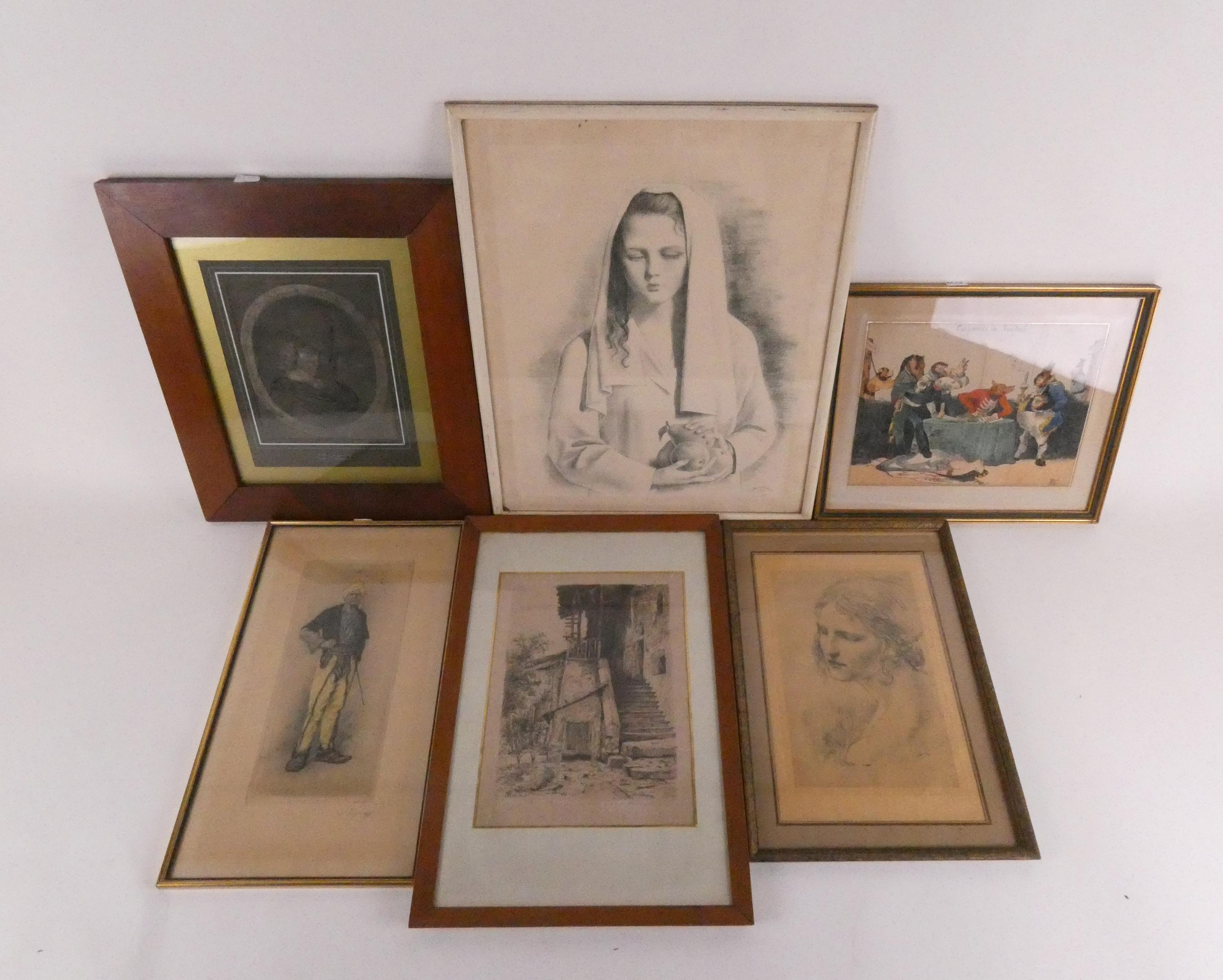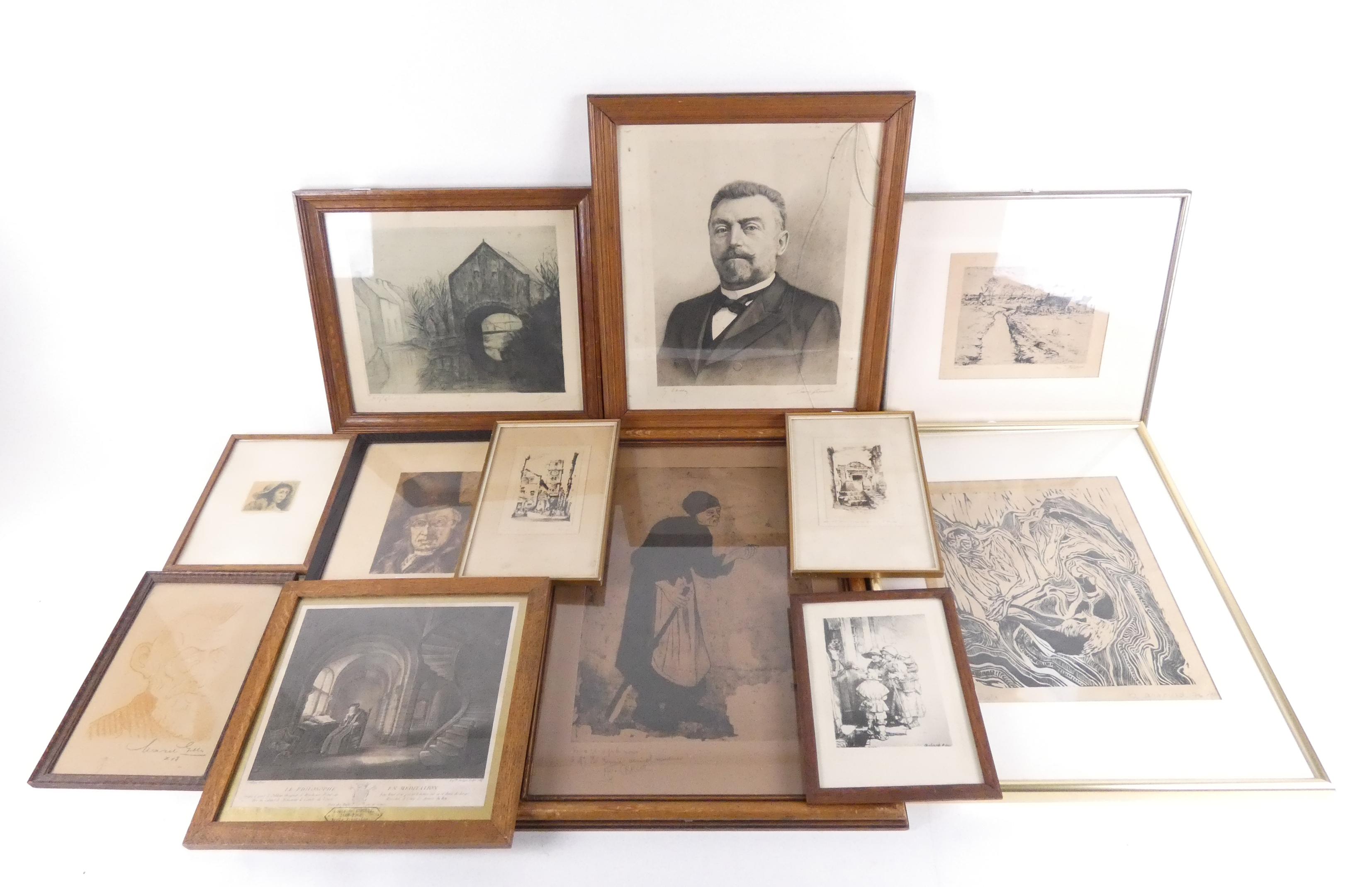 Estampe : Important lot d'eaux - fortes , lithographies.(18pcs) de différents artistes dont : Rembrandt , Buisseret , Gillis , Greuse , Arnould , Craco.