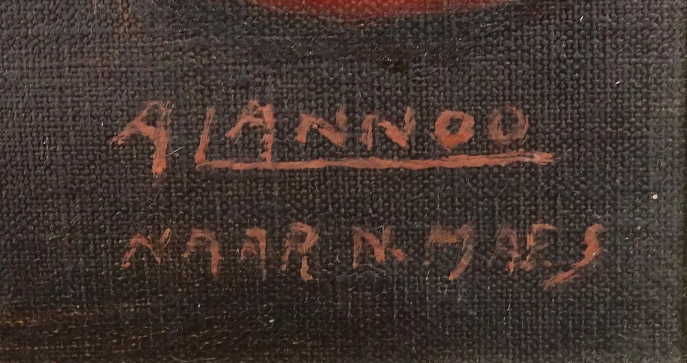 Tableau HST - Dame âgée assoupie - copie ancienne signé A.LANNOO d'après MAES NICOLAS