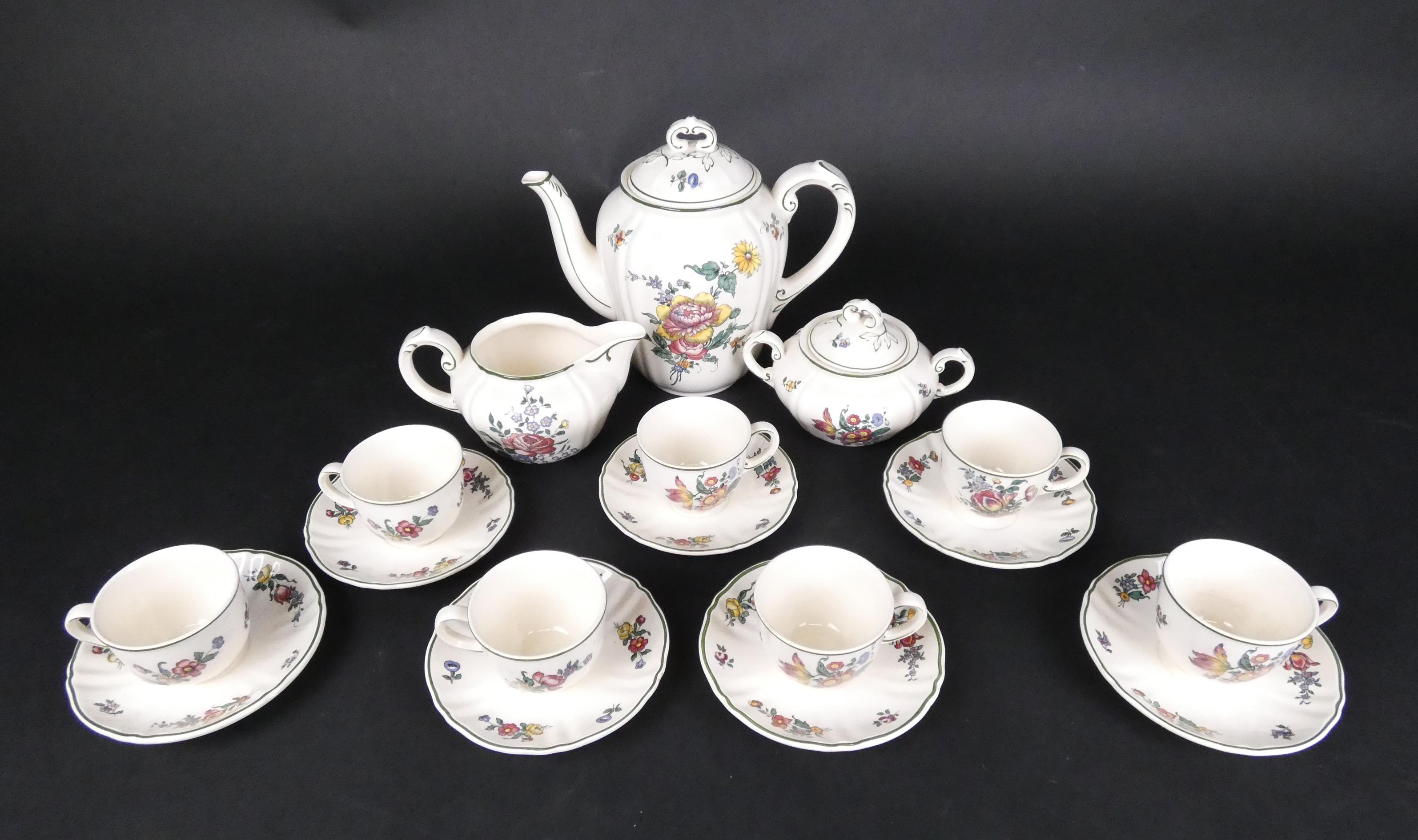 Céramique: Service à café en faïence Villeroy & Boch METTLACH (10pcs): cafetière, pot à lait, sucrier, 7 tasses et sous tasses