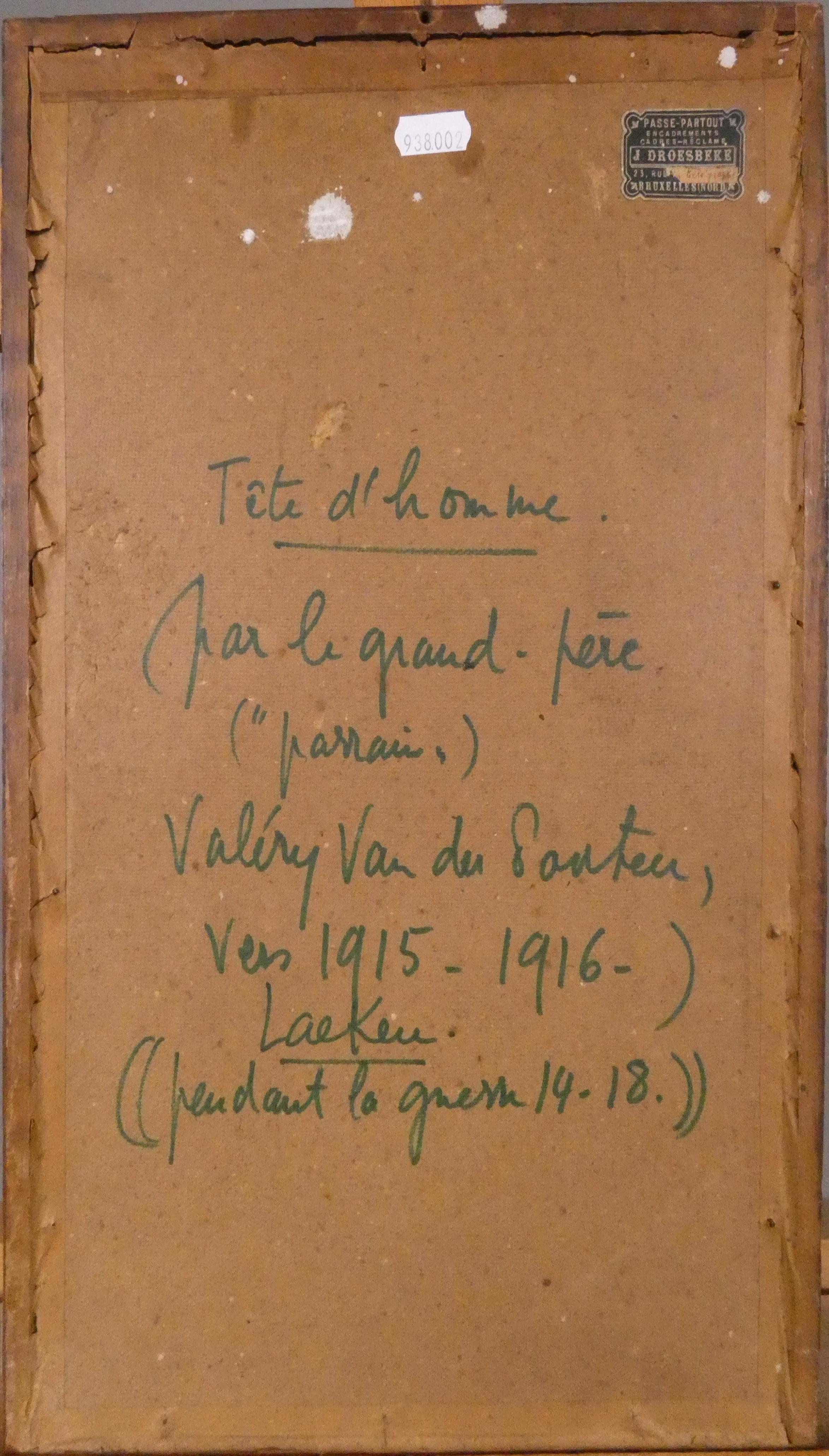 Tableau: dessin -Portrait d'homme- daté 15-16 signé *VANDER POORTEN V.* (Valery) (1875, 1932) 37x25cm cadre bois indication au dos