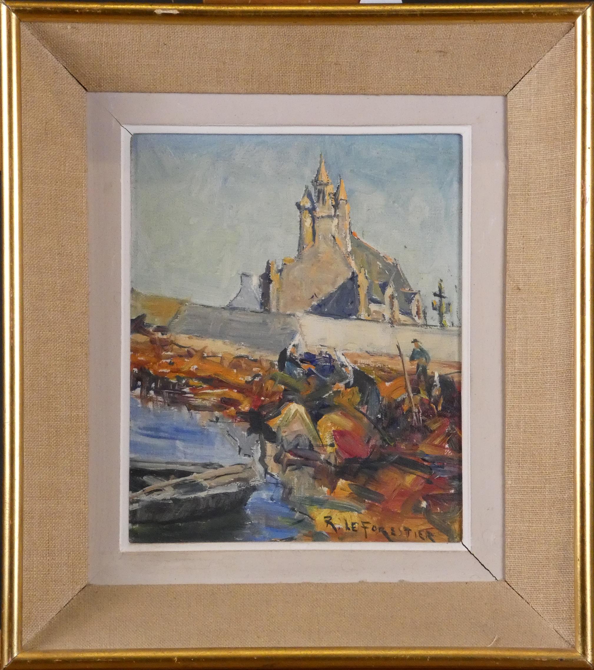 Tableau HST -Concarneau- daté au dos 1964 signé *LE FORESTIER R.* (René) (1903, 1972) 27x22cm cadre doré