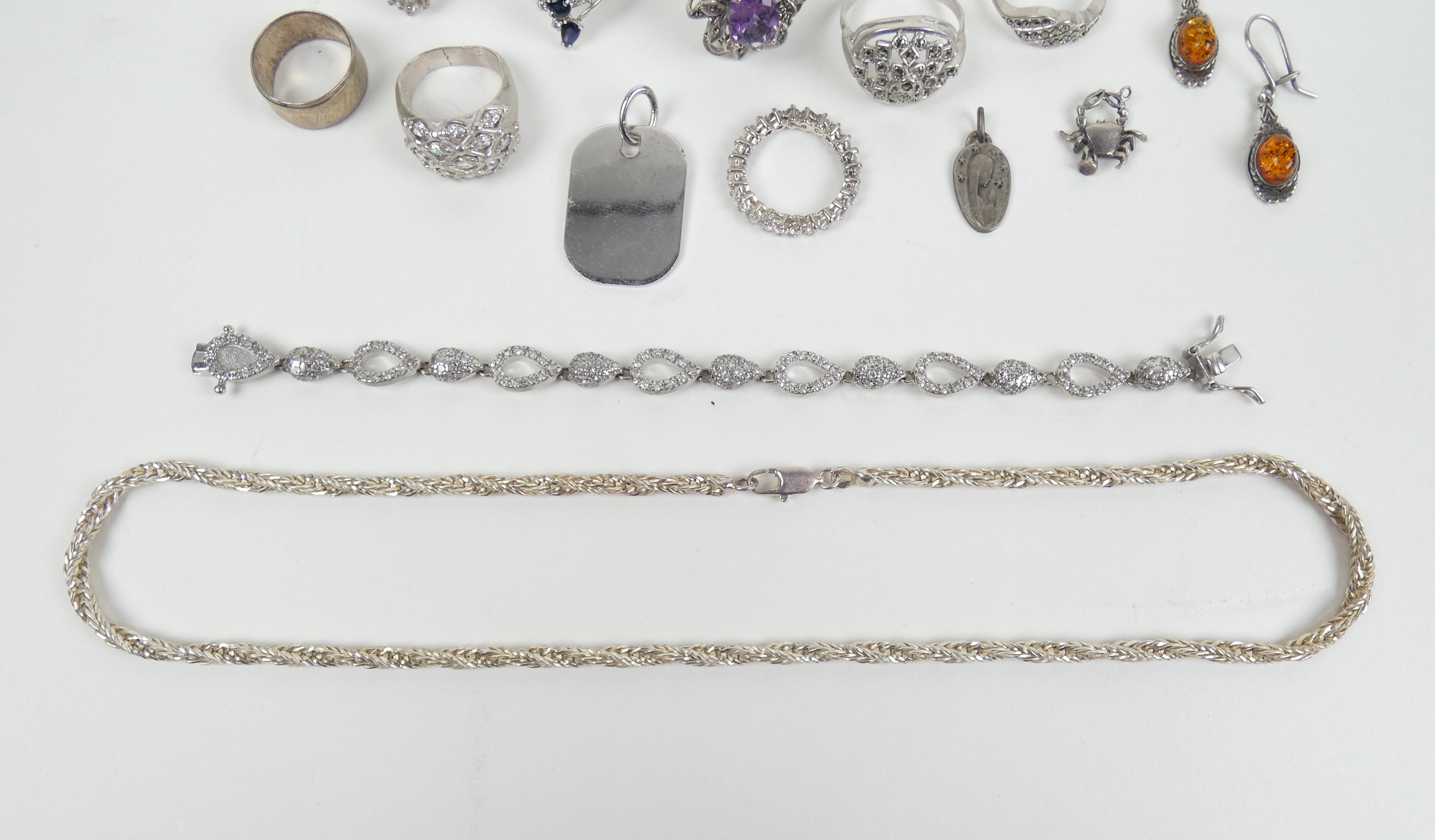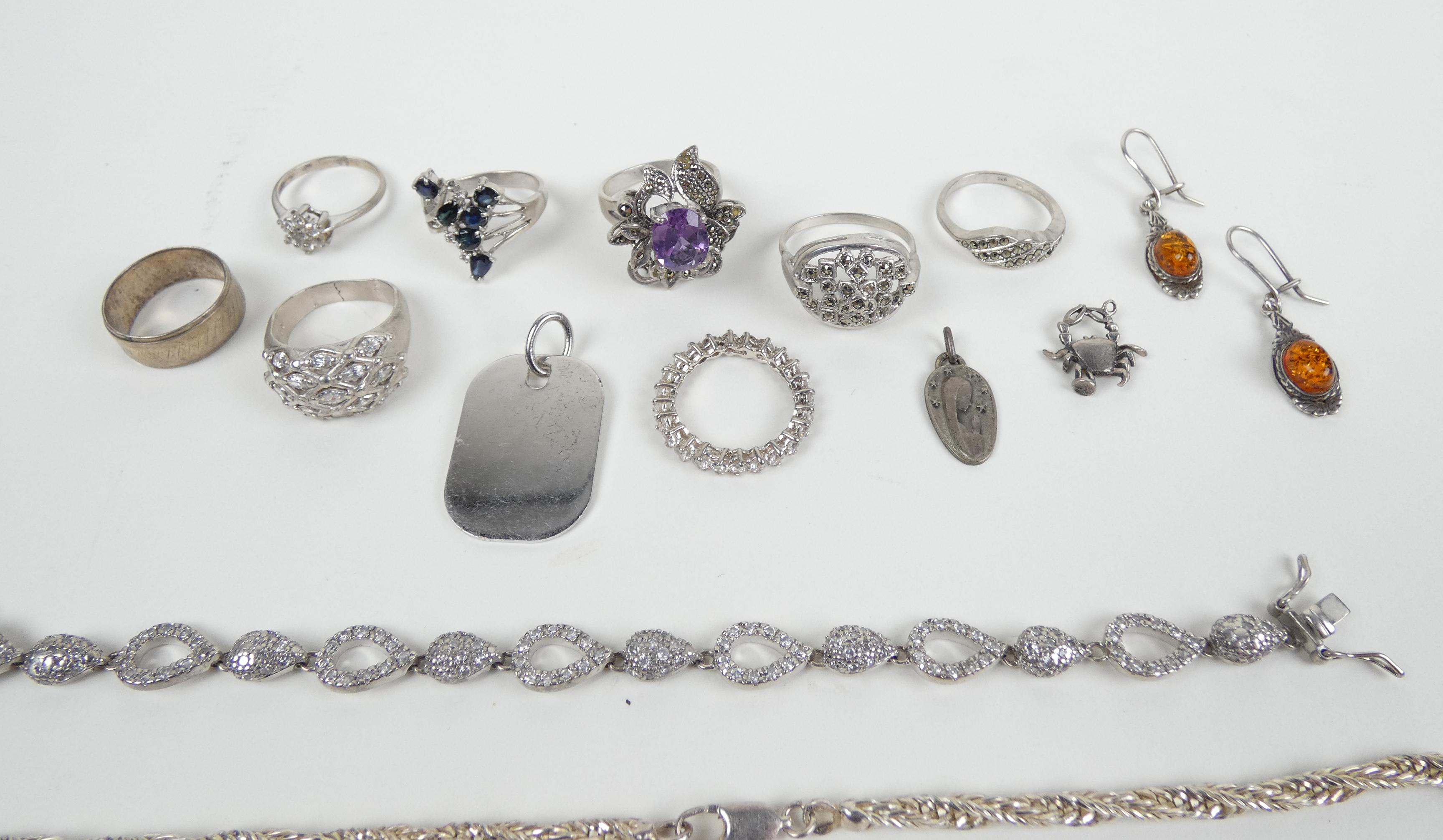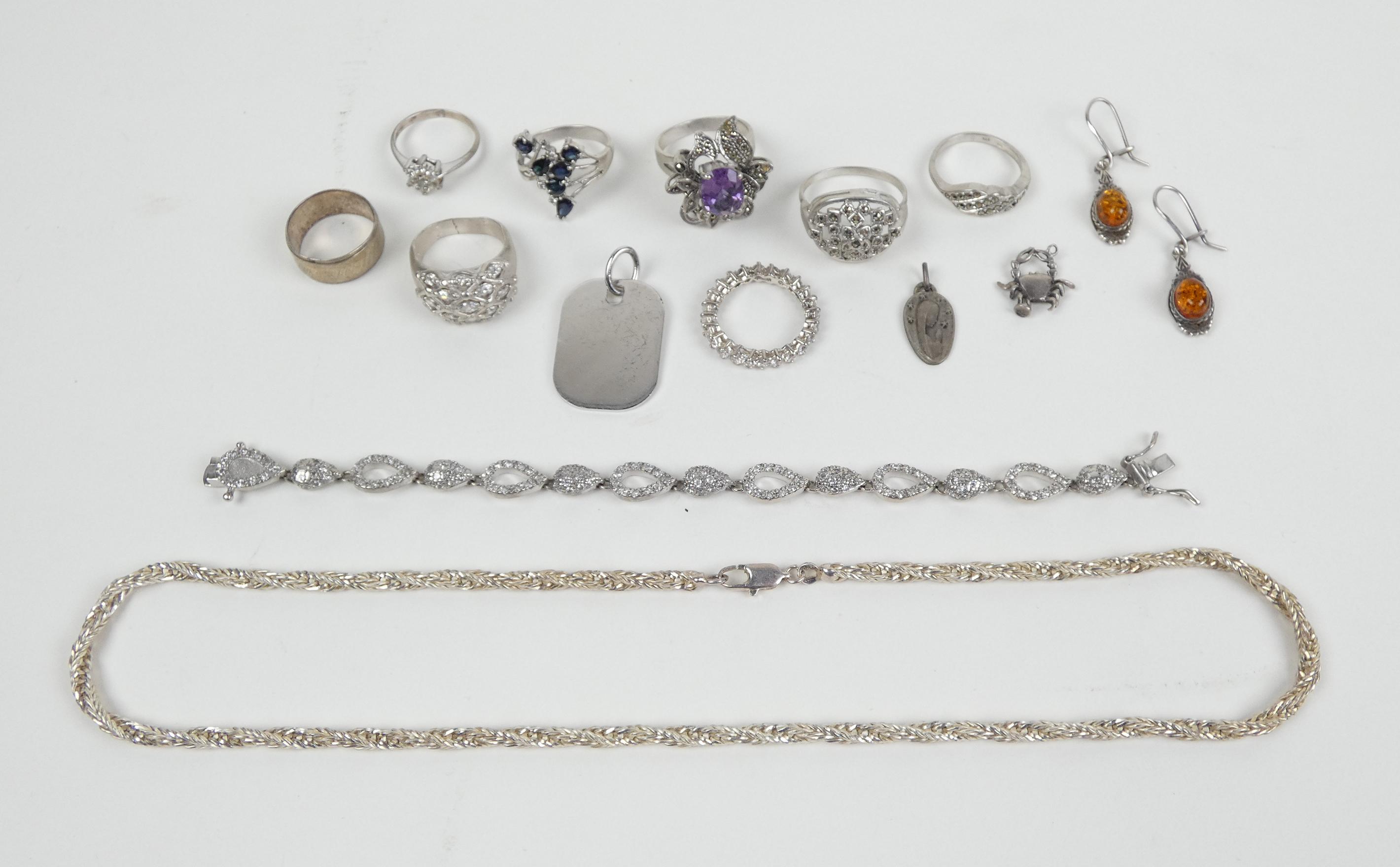 Bijou: Lot de bijoux en argent P: 67g (14pcs) (8bagues, collier, bracelet, 3pendentifs, paire de boucles d'oreilles)