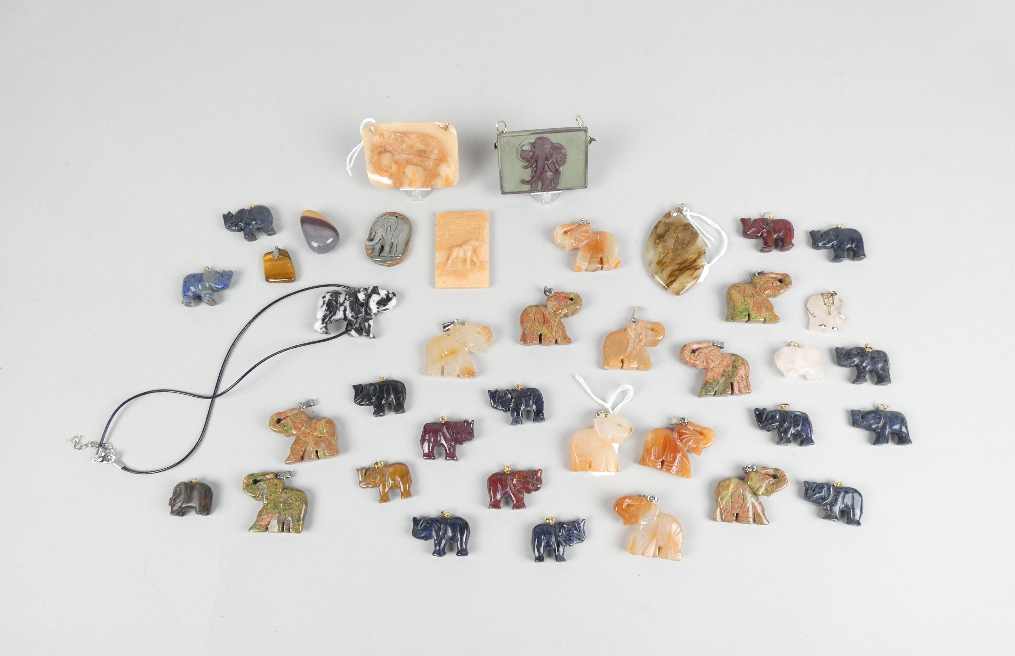 Bijou: Lot de pendentifs et plaques dont éléphants en pierre dont mookaite, unakite, jaspe,.(38pcs)