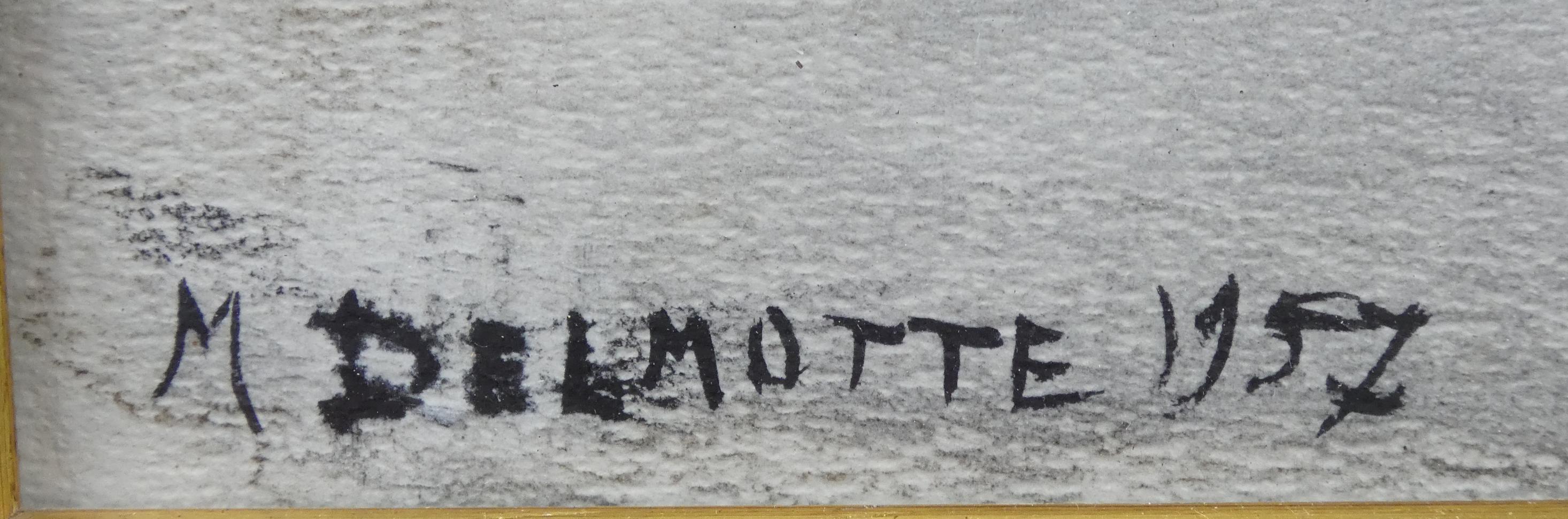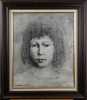 Tableau Lavis s/papier -Portrait de jeune fille- daté 1957 signé *DELMOTTE M.* (Marcel) (1901, 1984) 60x50cm cadre bois sous plexi