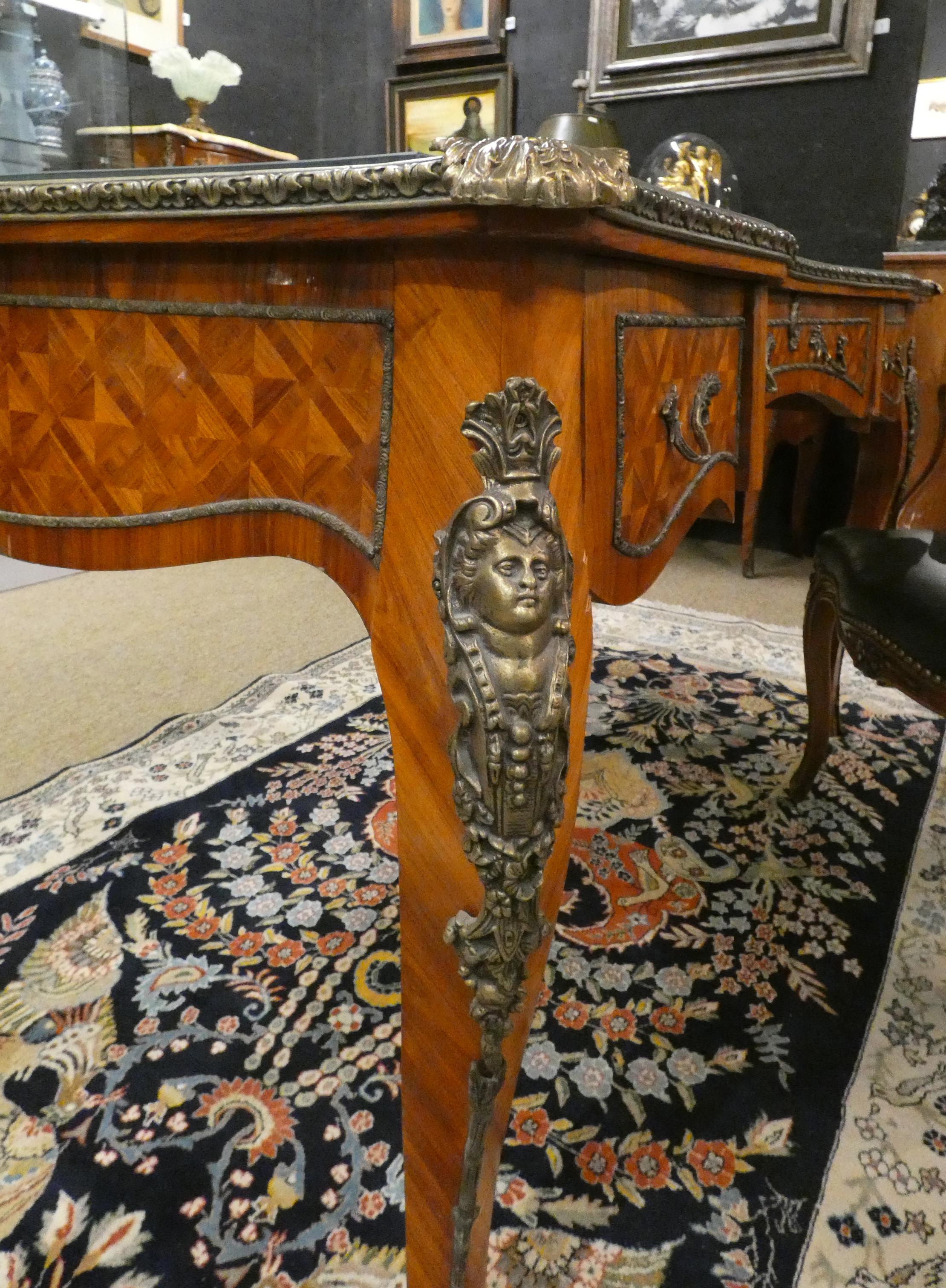 Meuble: Bureau galbé de ministre de style Louis XV en placage de bois de rose 20
