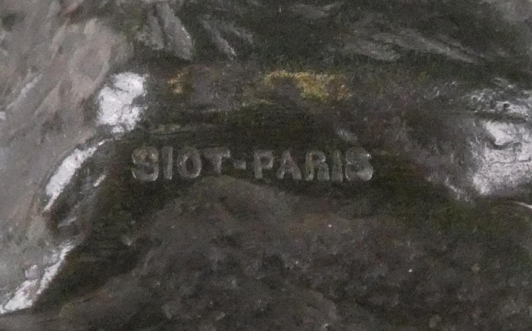 Sculpture: Bronze à patine verte -au But les Trois Coureurs- signé *BOUCHER A.* (Alfred) (1850, 1934) cachet du fondeur Siot Paris 28x42x21cm socle de marbre griotte