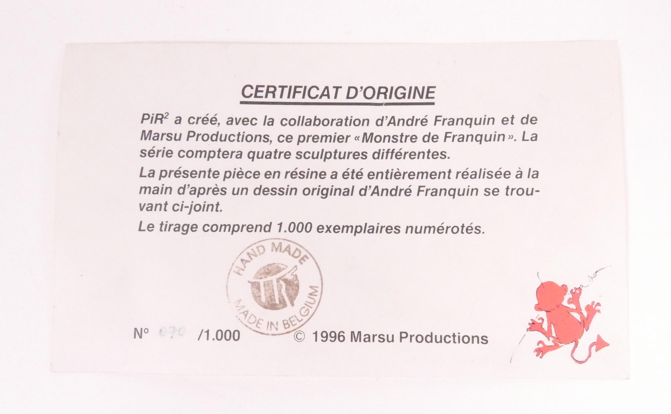 BD: Franquin, création Pixi -Le monstre rouge attaque le requin- N° 70/1000 en résine circa 1996 avec certificat et boite d'origine