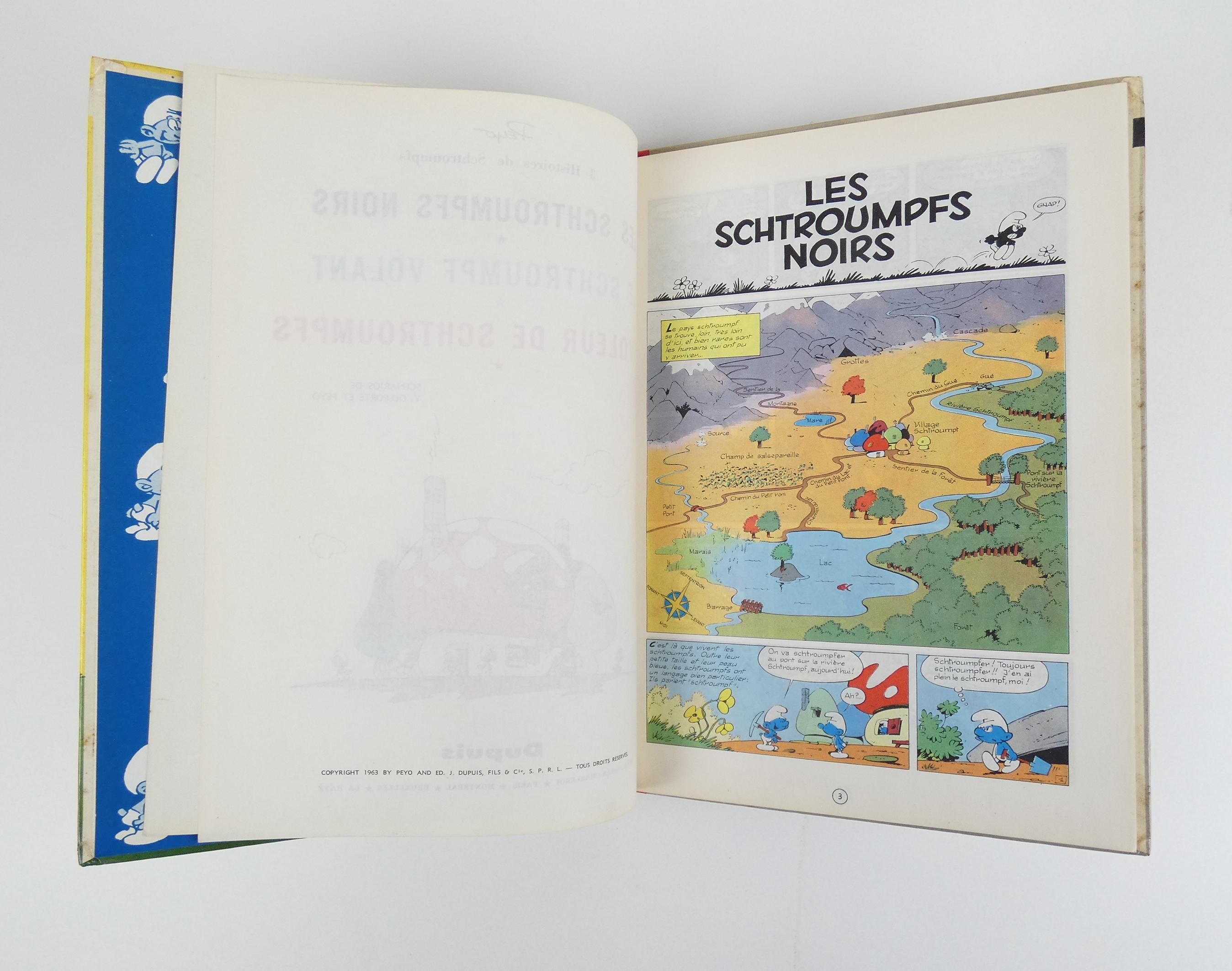 BD: Les Schtroumpfs par Peyo éd. Dupuis: EO Les Schtroumpfs noirs 1963 (Bon / Très bon état, dos déchirure, frottement couverture)