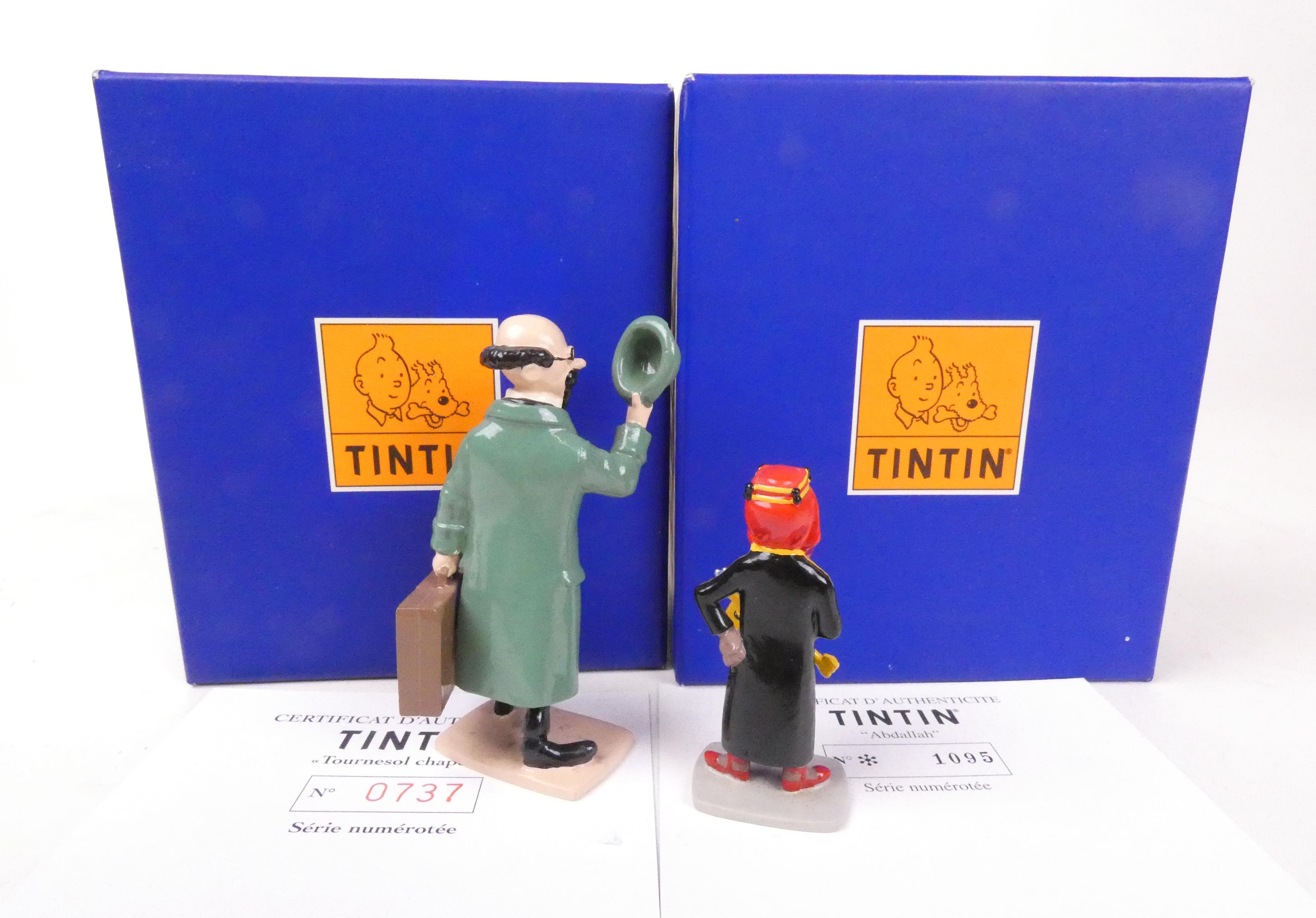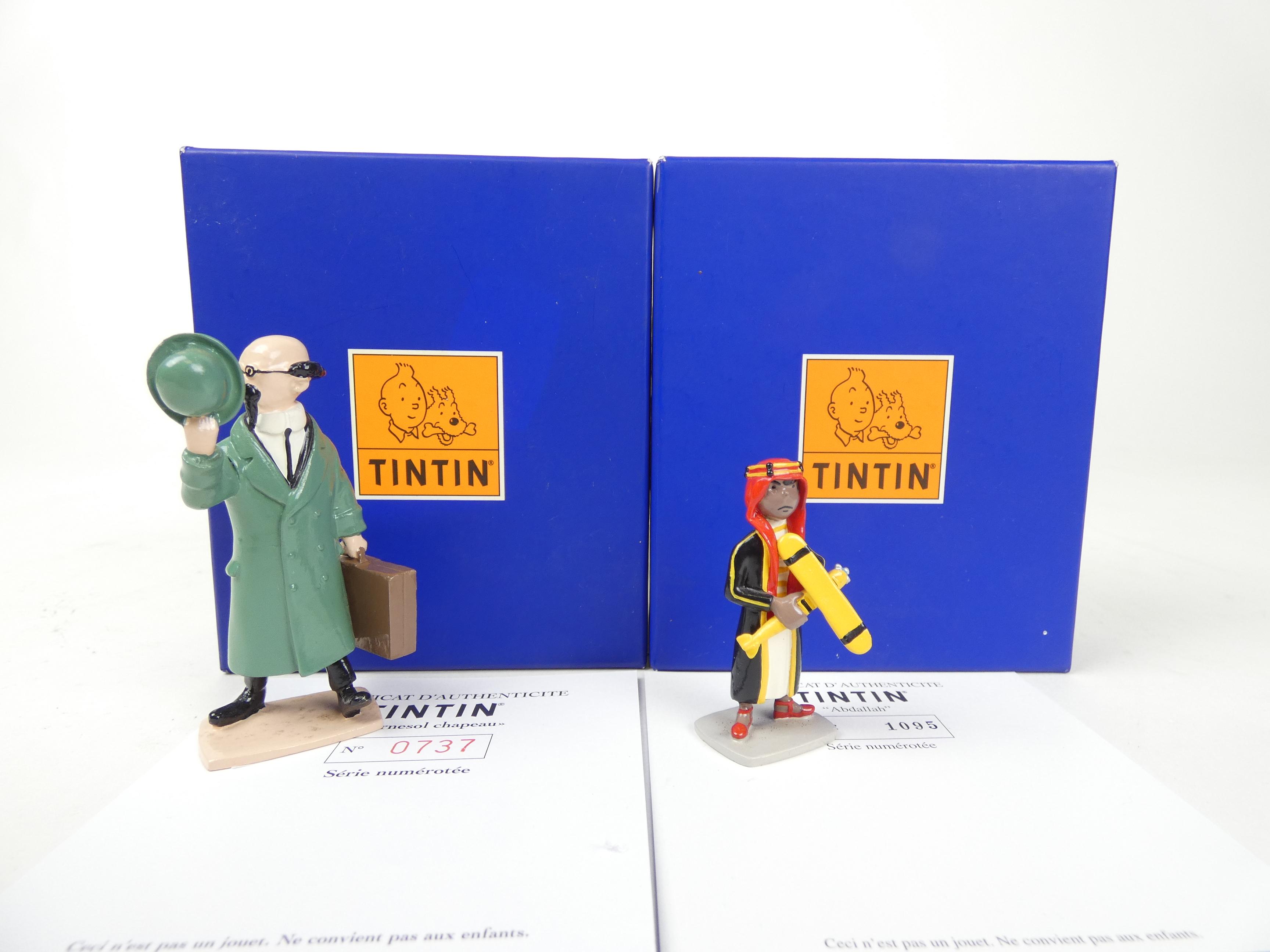 BD: HERGE, création Moulinsart (2pcs) en plomb : -Tournesol Chapeau- N° 737 + -Abdallah- N° 1095 collection Générique avec certificat et boite d'origine