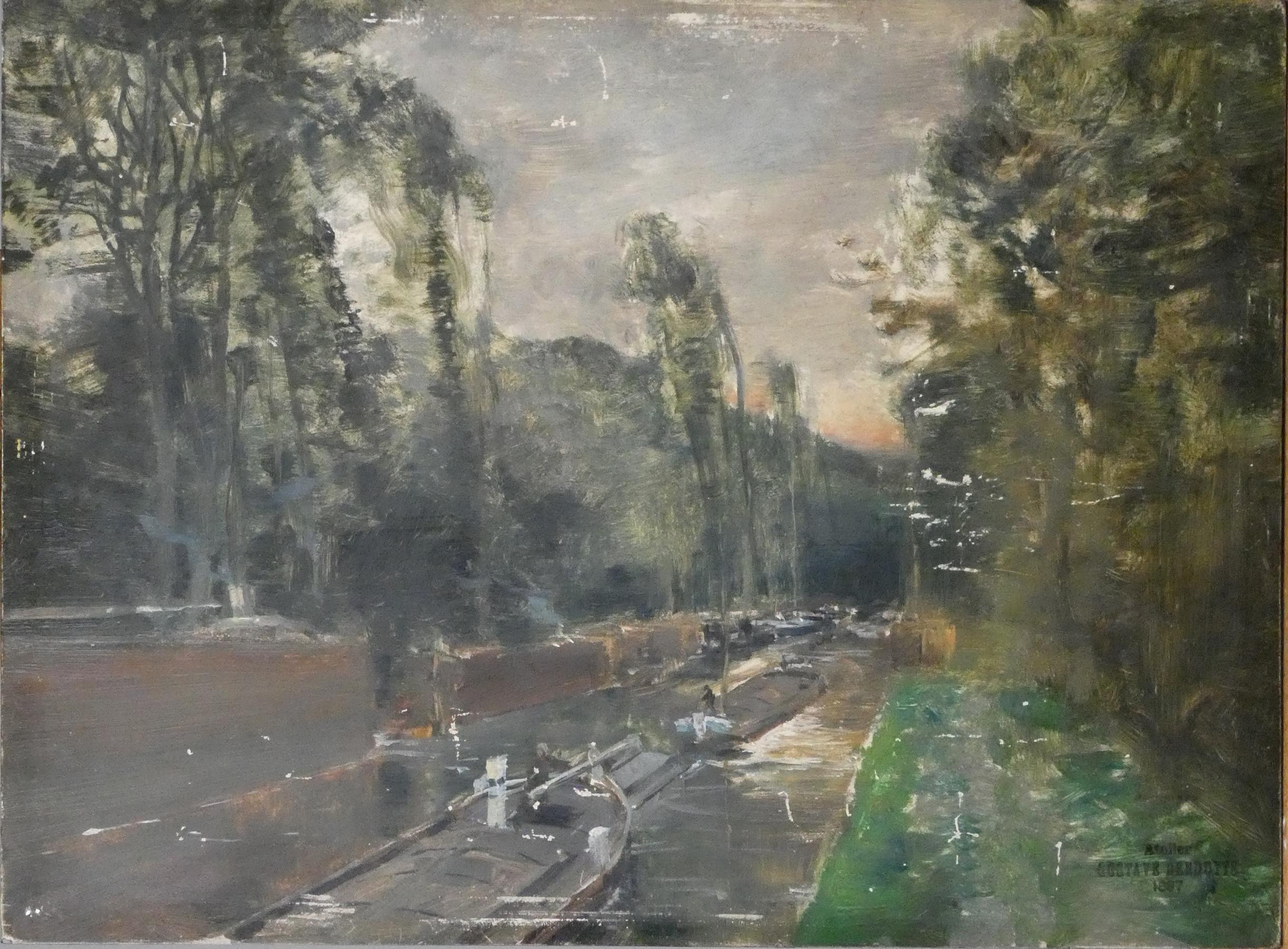 Tableau HSP -Canal- cachet d'atelier DEN DUYTS Gustave