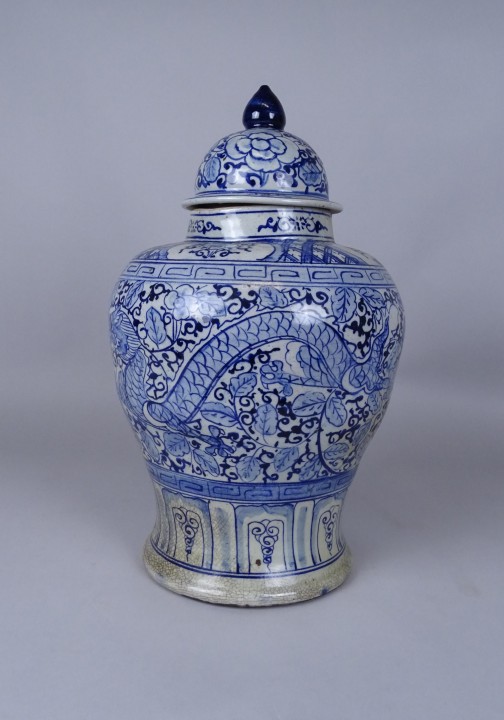Céramique: potiche couverte Iranienne (Perse) en céramique silicieuse (def cuisson) probablement 17eS H:47cm